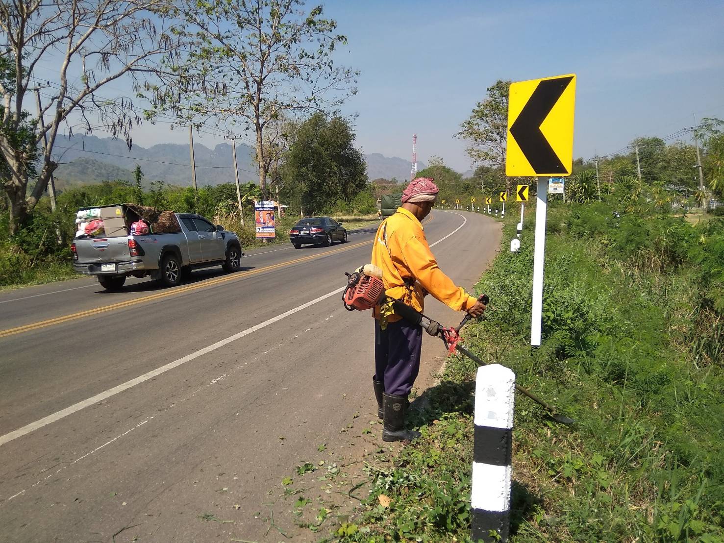 2.ดำเนินการตัดหญ้า ทล.323 ตอนแยกปากกิเลน - น้ำตกไทรโยคใหญ่ ช่วง กม.123+000 - 125+500