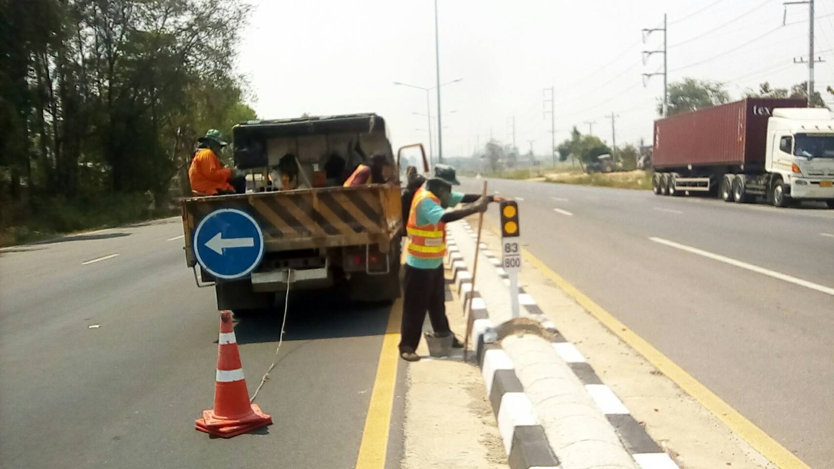 แขวงทางหลวงกาญจนบุรีโดยงานอำนวยความปลอดภัย ดำเนินการในทางหลวงหมายเลข 323