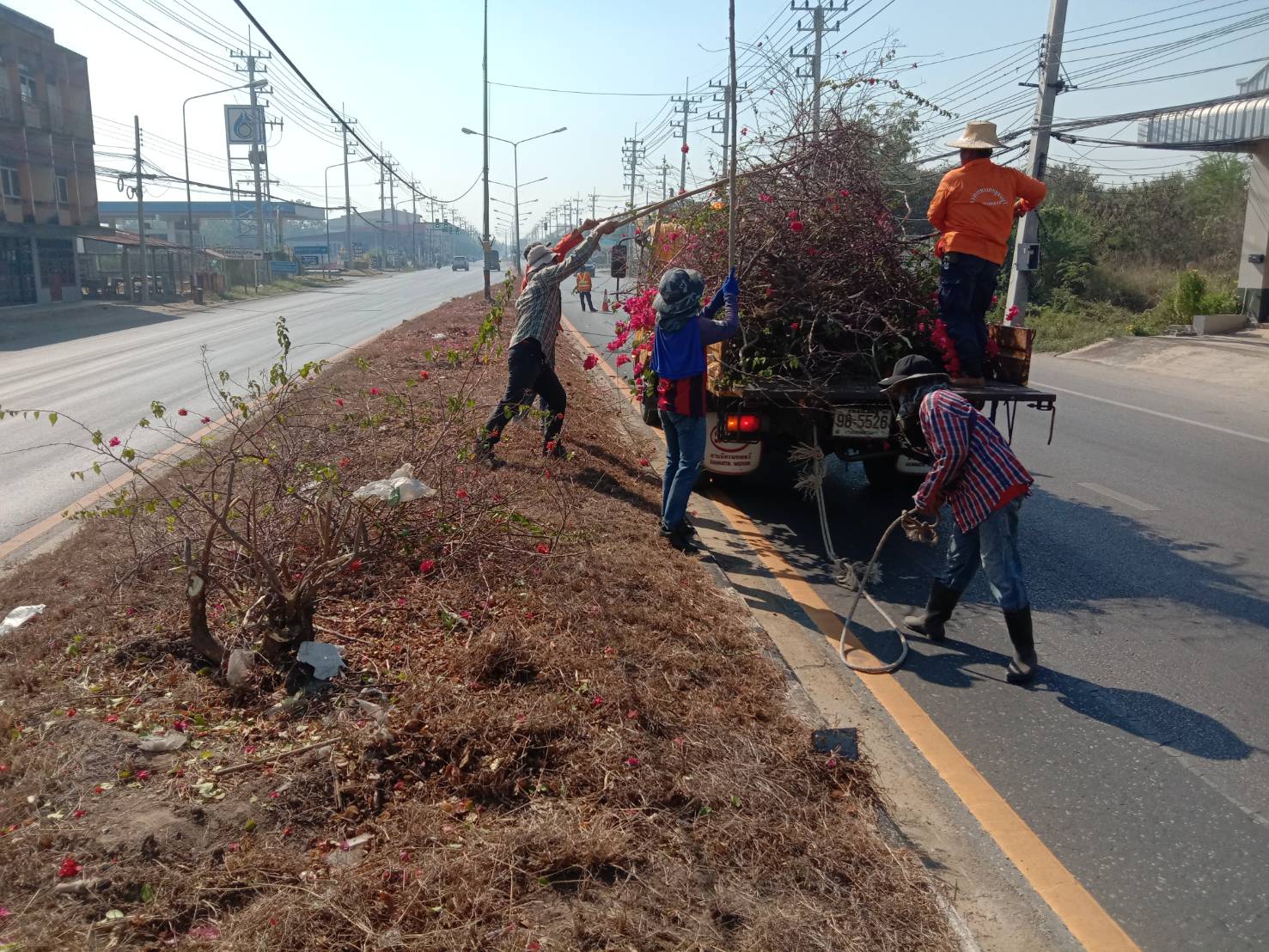 1.ปรับปรุงทำความสะอาดเกาะกลางแยกบ้านใหม่ ทล.3548 กม.16+600 – 17+235 (เขตติดต่อเทศบาลท่าม่วง)