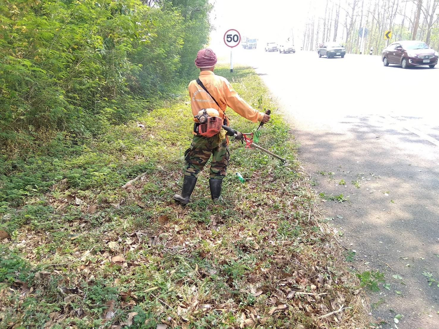 2.ดำเนินการตัดหญ้าบริเวณไหล่ทาง ทล.323 ตอนแยกปากกิเลน - น้ำตกไทรโยคใหญ่ เริ่ม ช่วง กม.132+000 - 135+500