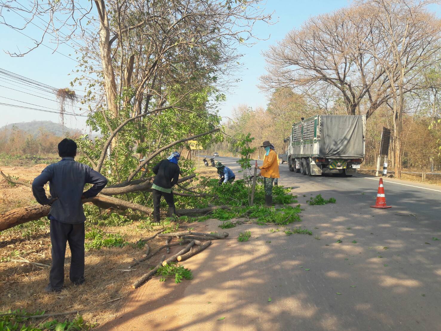 2.ดำเนินการตัดแต่งต้นไม้ ทล3209 กม.33+150