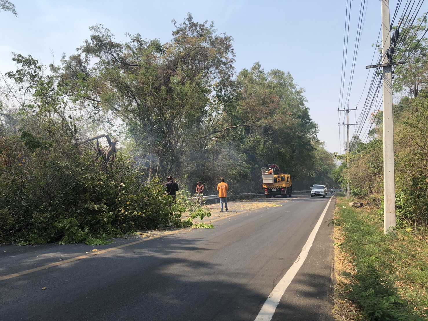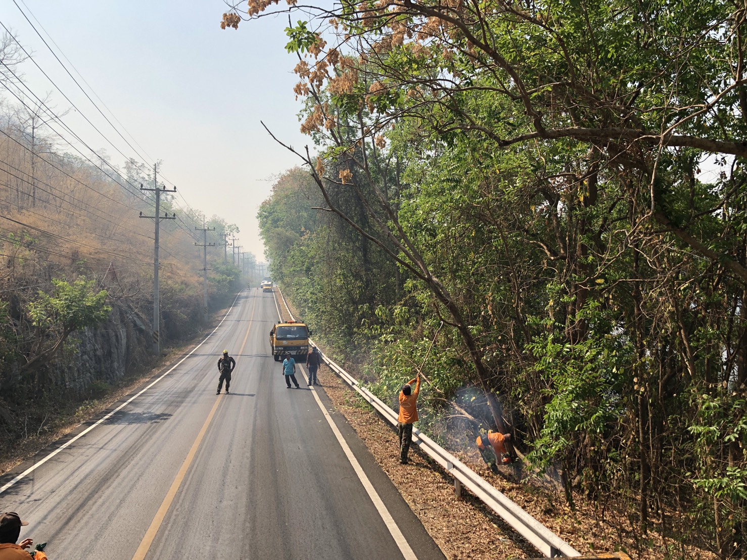 1. ดำเนินการตัดแต่งกิ่งไม้ที่ยื่นล้ำเข้ามาในผิวจราจร ในทางหลวงหมายเลข 31990102 ตอน ท่าพะเนียด - ช่องสะเดา เริ่มต้น กม.39+000 ถึง กม.40+355