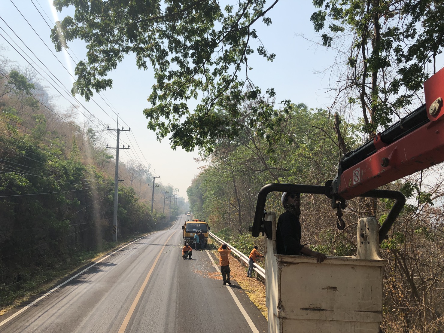 แขวงทางหลวงกาญจนบุรีโดยหมวดทางหลวงศรีสวัสดิ์ ดำเนินการในทางหลวงหมายเลข 31990102