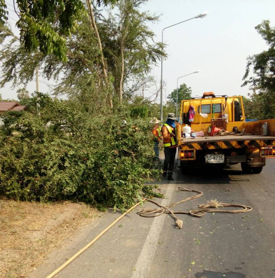 2. งานตัดแต่ง ริดรอนกิ่งไม้ที่โน้มเอียงเข้าหาผิวจราจร ตัดต้นไม้แห้งที่ยืนต้นตาย ทล.323 ตอน ท่าเรือ-ท่าน้ำตื้น กม.39+000-กม.46+000,ทล.3084 ตอน ท่าม่วง-หนองขาว กม.0+903-กม.9+325