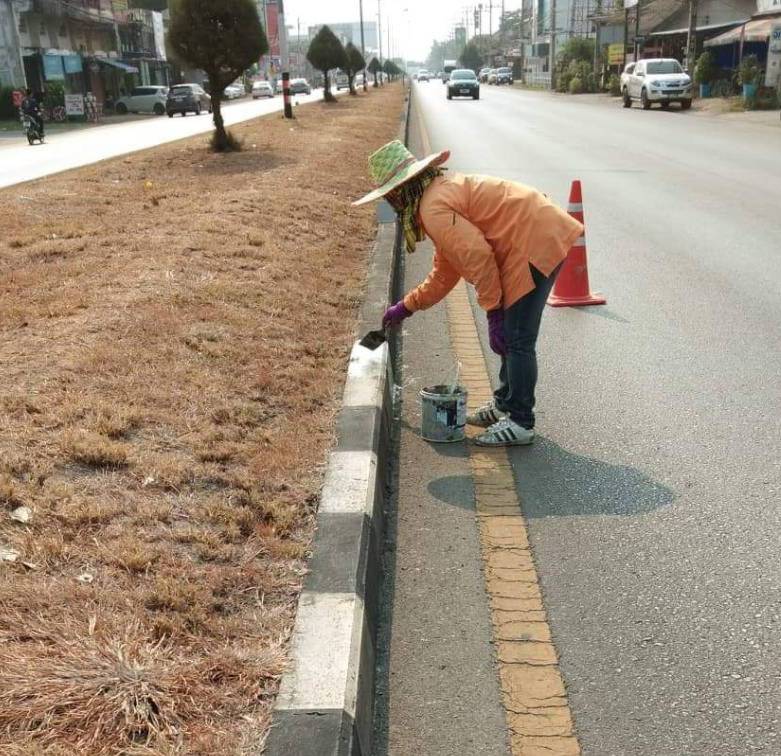 4.งานทาสีน้ำปูนขอบเกาะ ทล.323 ตอน ท่าเรือ-ท่าน้ำตื้น กม.47+000-54+240