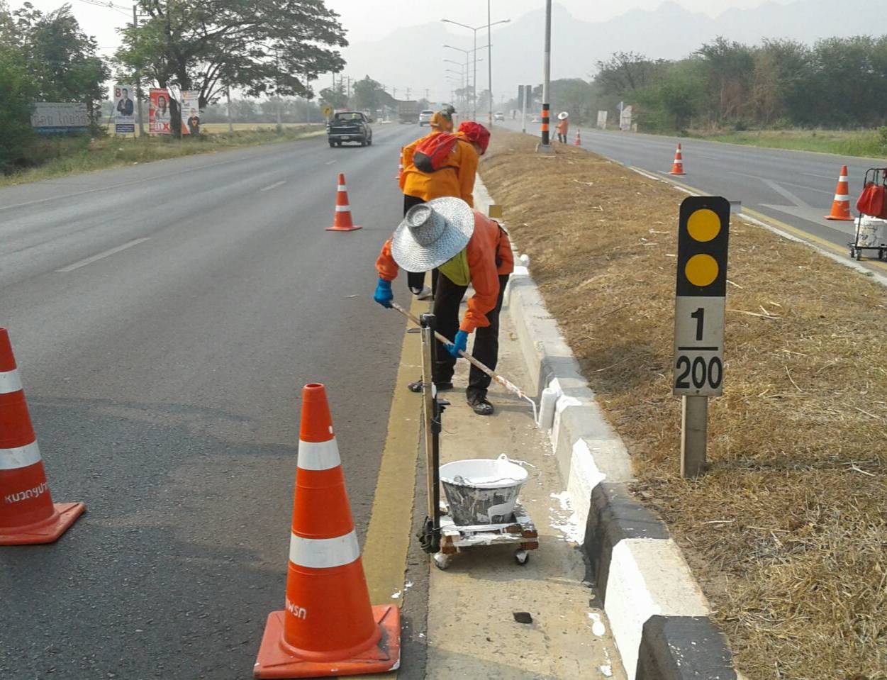 3.งานทาสีน้ำปูนขอบเกาะ ทล.323 ตอน ท่าเรือ-ท่าน้ำตื้น กม. 47+000-กม.54+240(เป็นช่วงๆ)