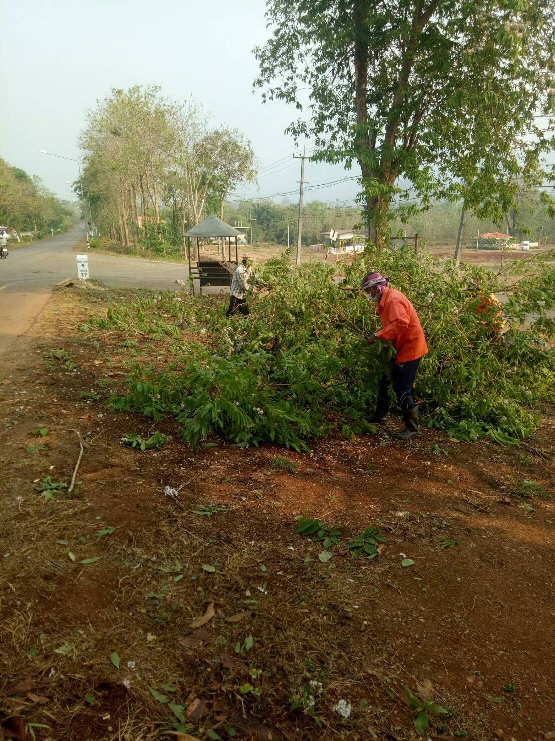 1. งานเคลียร์ไม้ล้มสองข้างทางจากลมพัดแรงเมื่อวาน ในทางหลวงหมายเลข 3272 กม.3+500 - กม.15+000