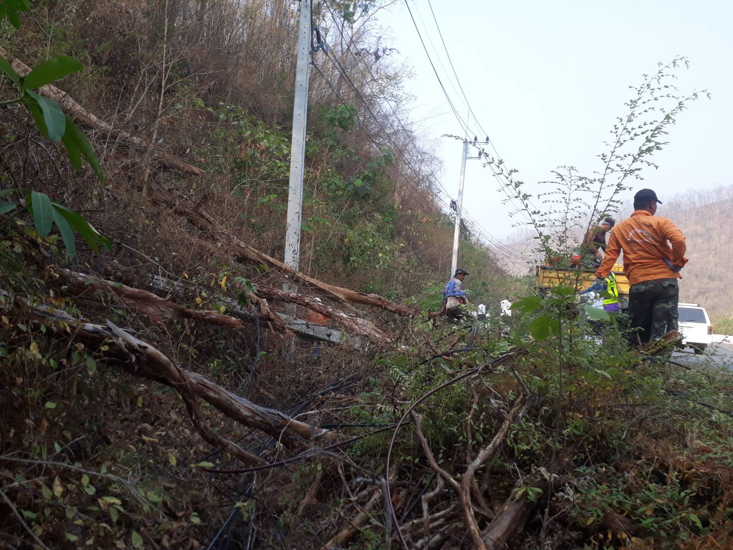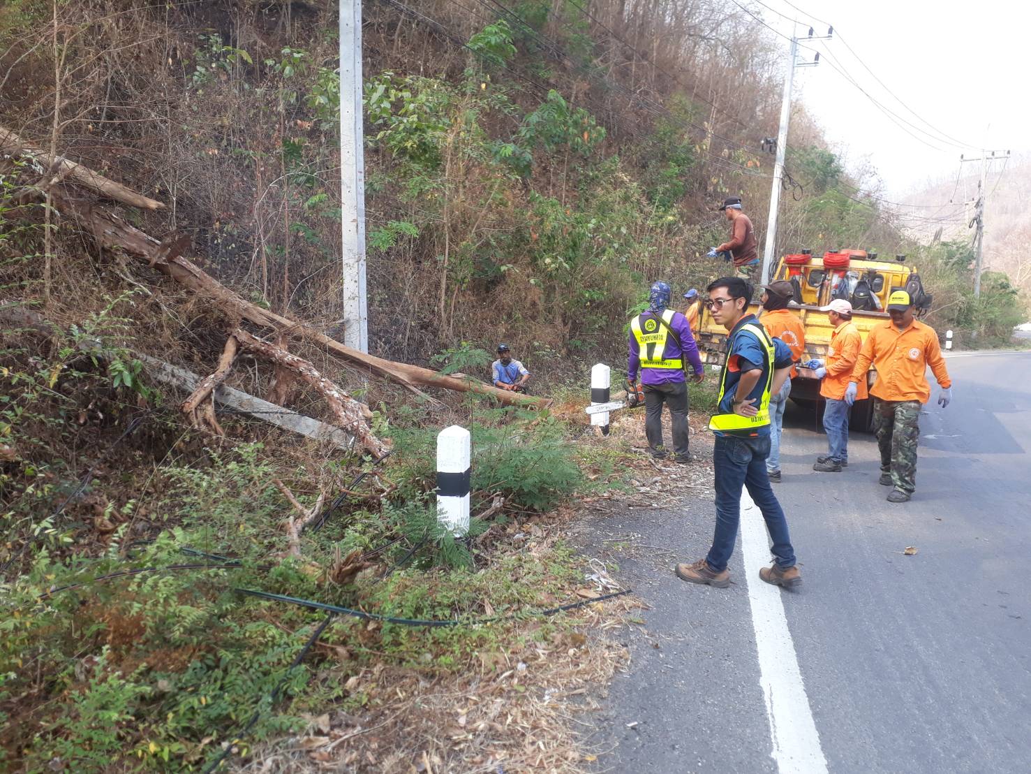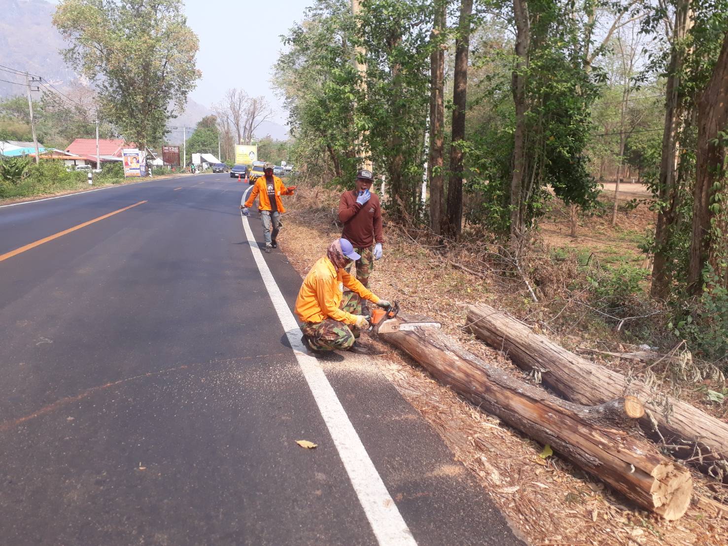 1. ดำเนินการเคลื่อนย้ายต้นไม้ที่โคนล้มออกจากคันทาง ในทางหลวงหมายเลข 31990103 ตอน ช่องสะเดา -ศรีสวัสดิ์