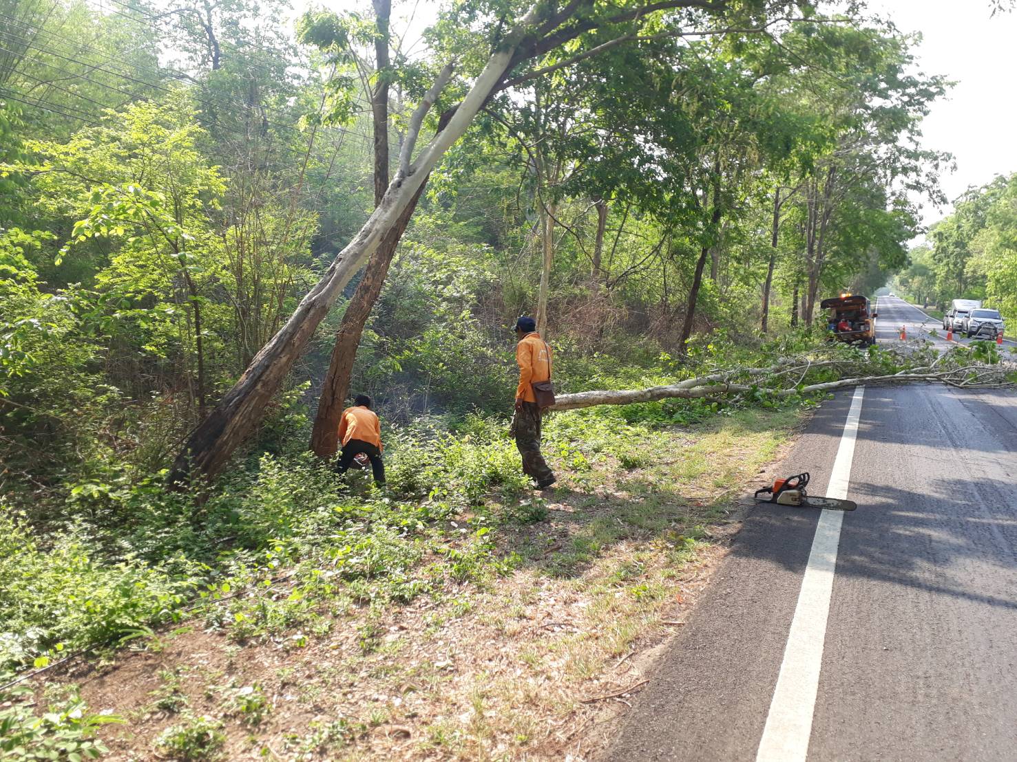1.ดำเนินการตัดแต่งต้นไม้ที่เสี่ยงต่อการล้มทับผิวจราจร ทล.31990103 ตอน ช่องสะเดา - ศรีสวัสดิ์ เริ่ม กม.50+800 - 51+500