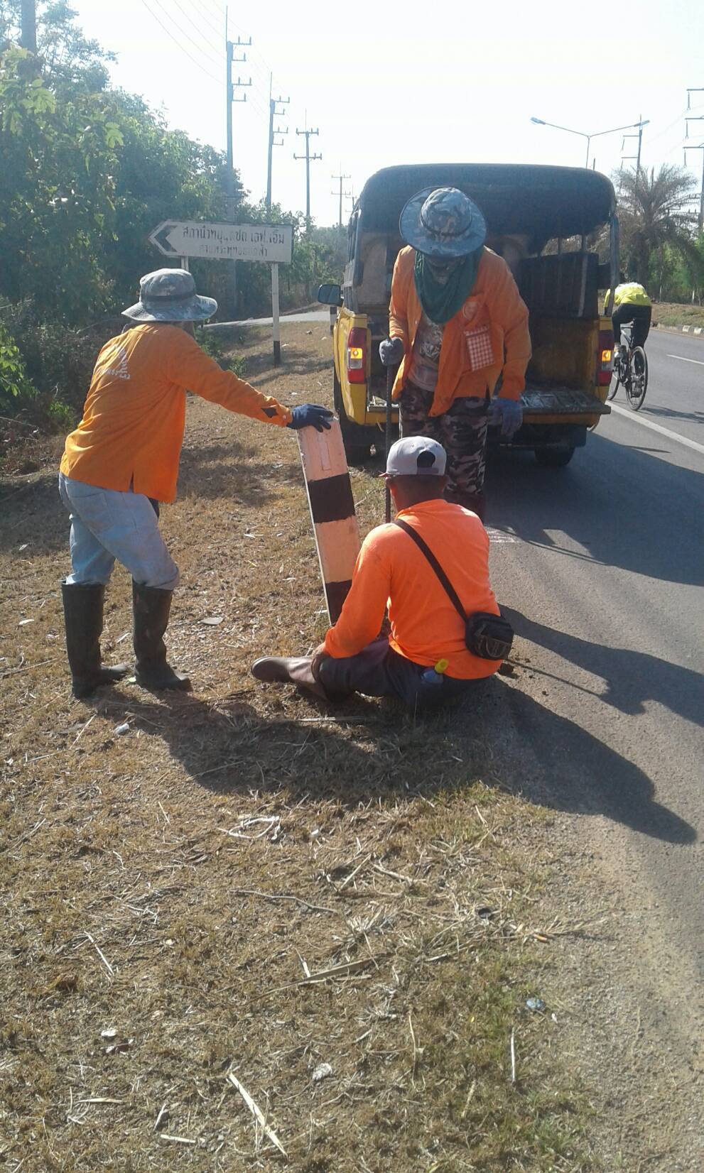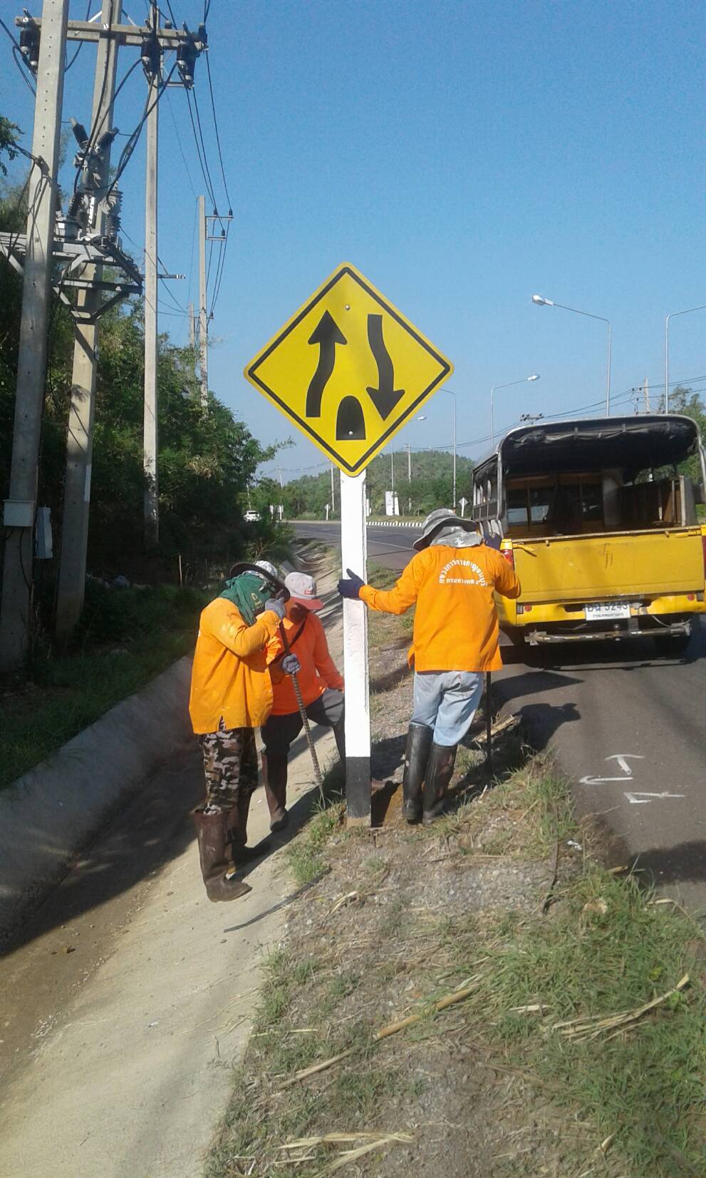 2. ดำเนินการปรับแต่งป้ายจราจรและหลักกันโค้งที่เอนเอียง ในสายทางควบคุมฯ