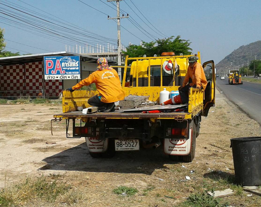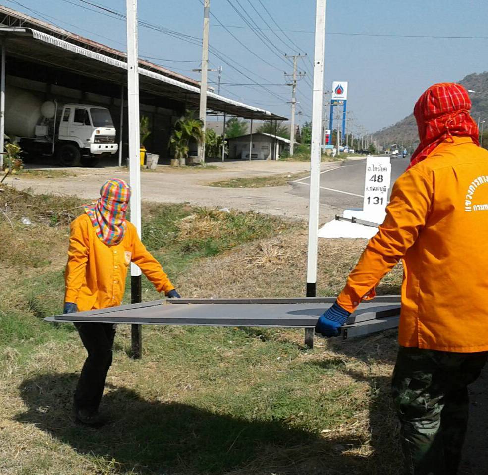 3.งานเก็บป้ายแนะนำจุดบริการทั่วไทยช่วงเทศกาล ป้ายเตือนที่ชำรุดบริเวณเกาะกลาง ทล.367 ตอน ทางเลี่ยงเมืองกาญจนบุรี