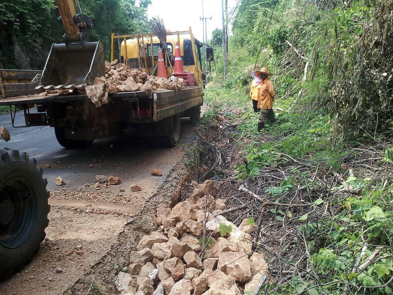 1.ดำเนินการขุดลอกทำความสะอาดรางระบายน้ำ คสล. (ที่อุดตันสาเหตุเกิดจากการทับถมของดิน) ใน ทล. 3343 ตอนแยกวังโพธิ์-โรงพยาบาลไทรโยค ช่วง กม.1+350 - 1+500 (ด้านซ้ายทาง) พร้อมซ่อมแซมไหล่ทางที่ถูกน้ำกัดเซาะเป็นร่องลึก กม.1+250 - 1+320 (ด้านขวาทาง)