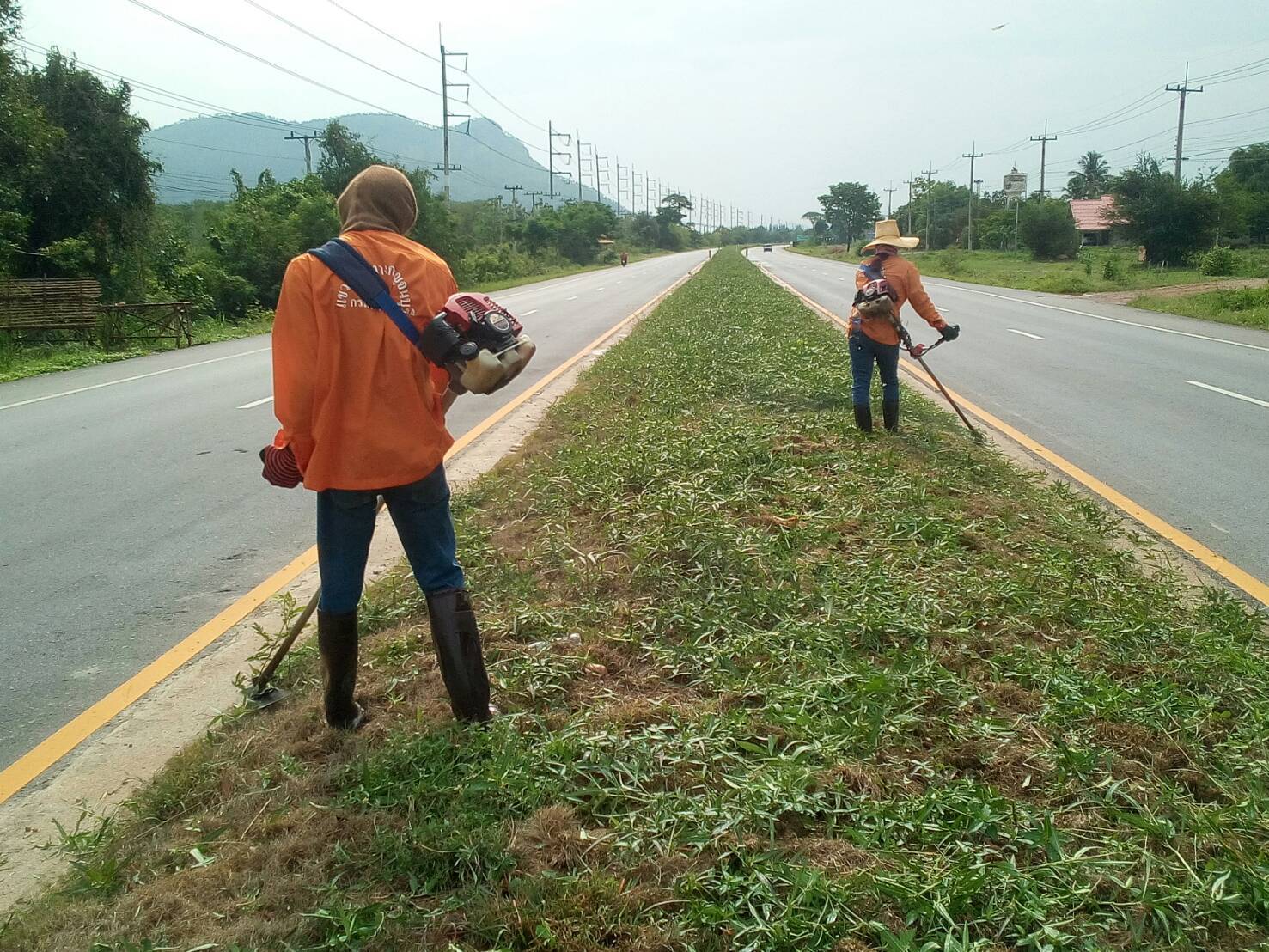 1.ดำเนินการตัดหญ้าเกาะกลาง ทล.323 กม.76+700 - 87+000