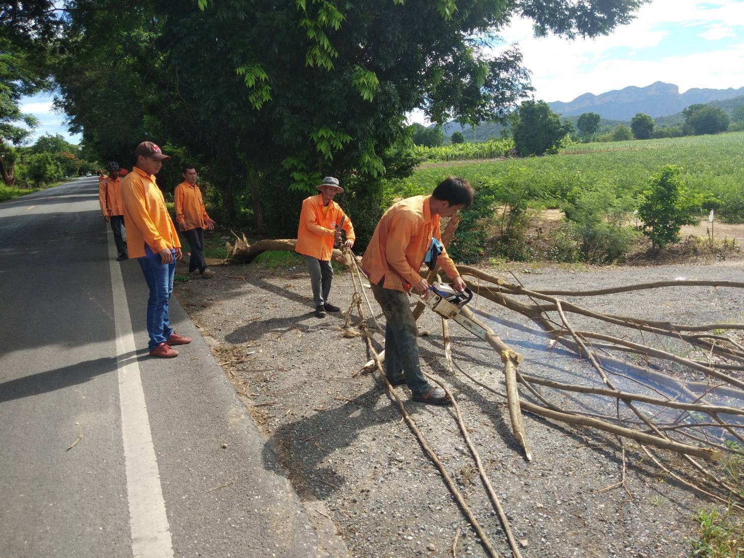 แขวงทางหลวงกาญจนบุรีโดยหมวดทางหลวงานมะขามเตี้ย ดำเนินการในทางหลวงหมายเลข 3209