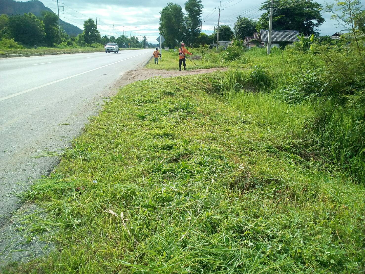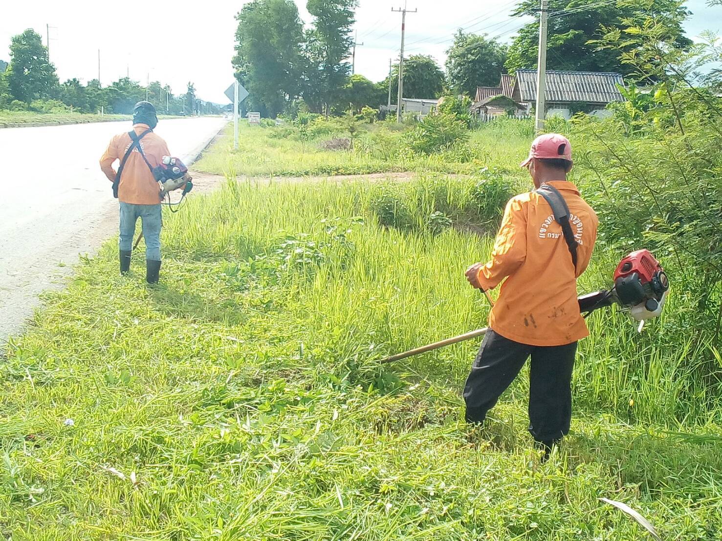 1.ดำเนินการตัดหญ้าสองข้างทาง