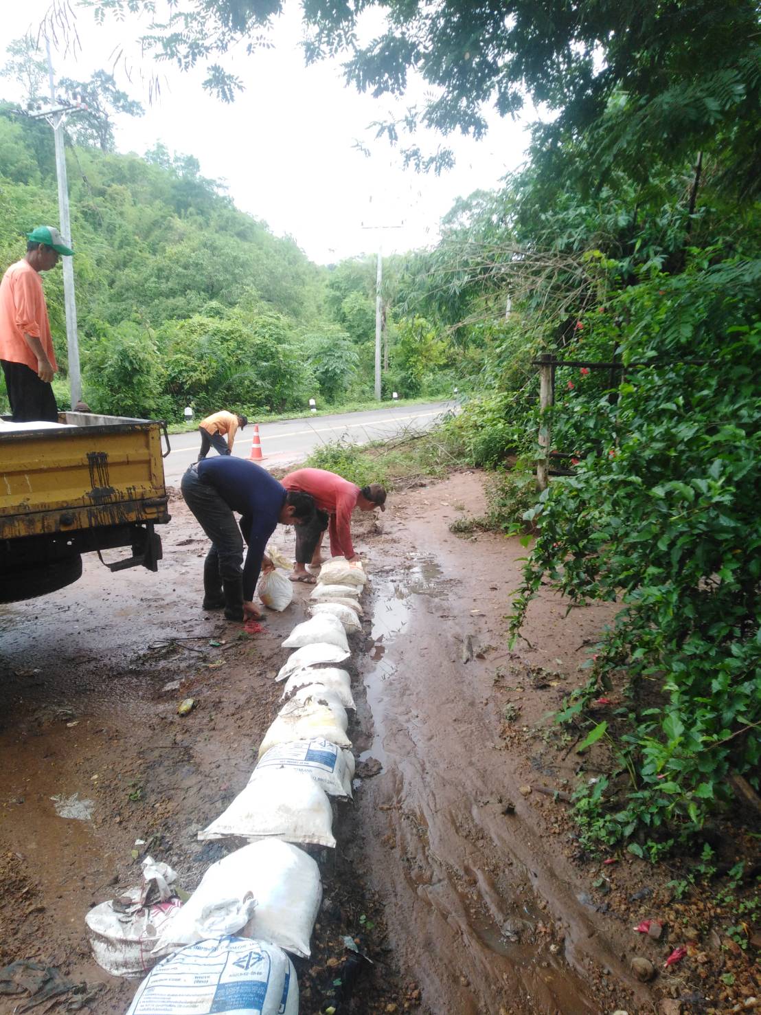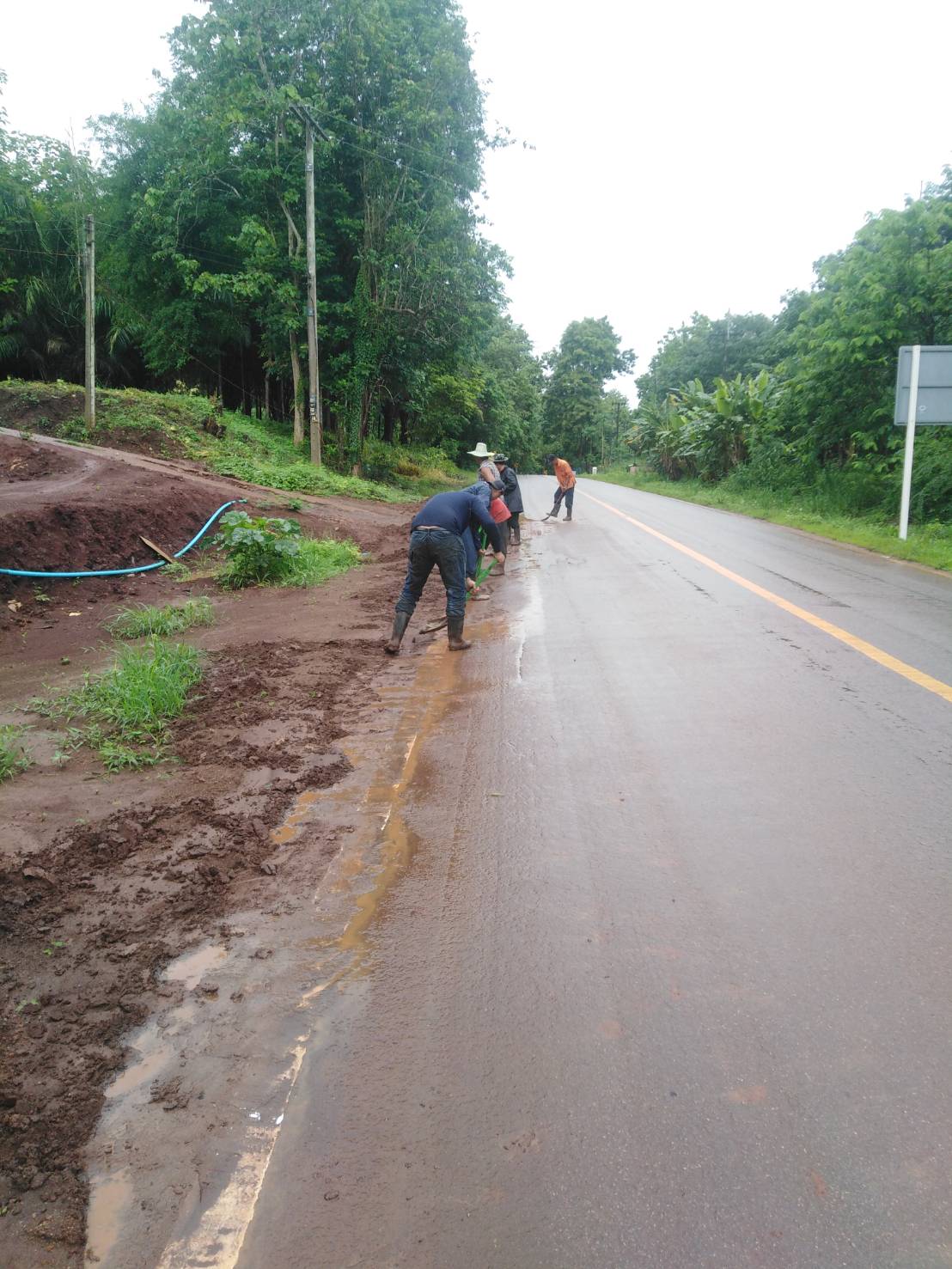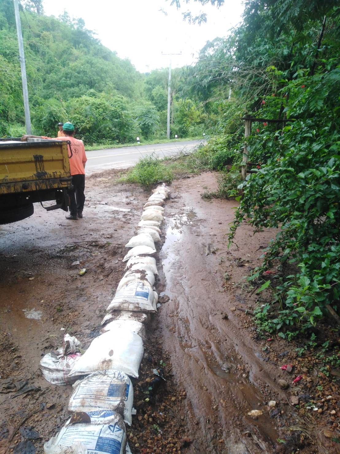 1. งานเรียงกระสอบทรายทำแนวกันดินโคลนไหลลงผิวทาง, เคลียร์เศษดินออกจากผิวทาง, ตัดแต่งกิ่งไม้สองข้างทาง? ในทางหลวงหมายเลข 3272 กม.12+000- กม.36+000