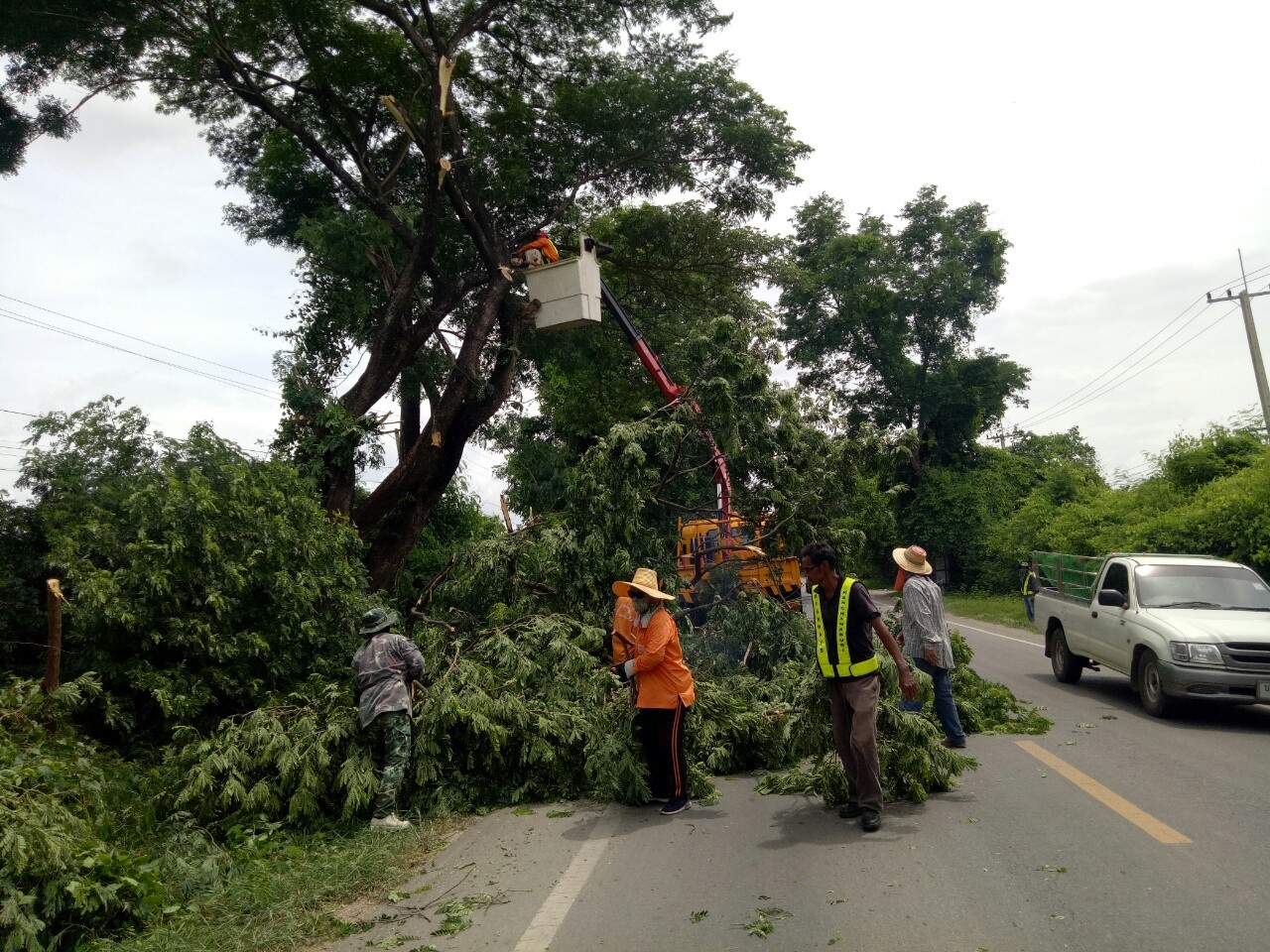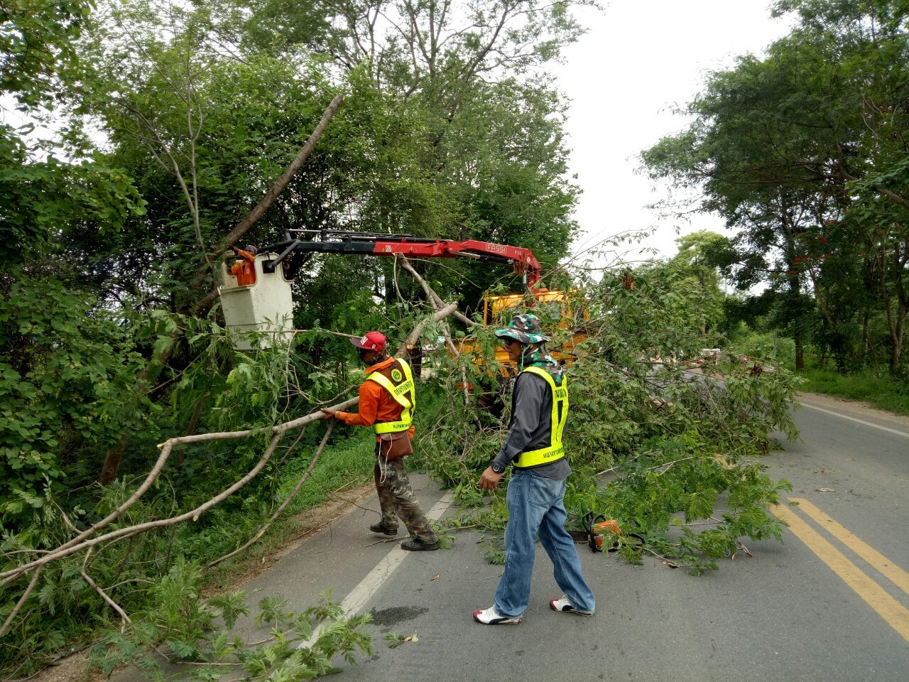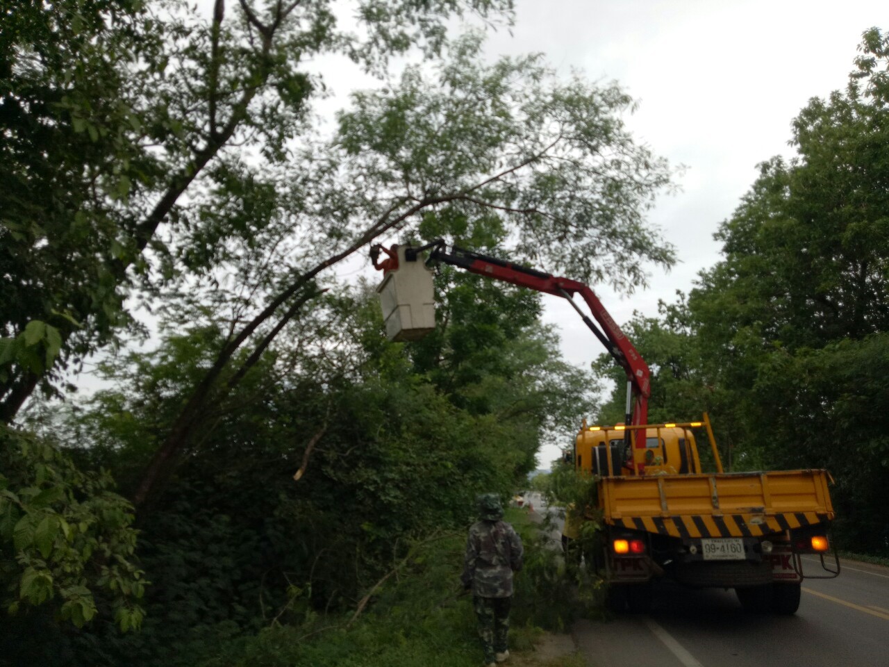 1.ดำเนินการตัดแต่งกิ่งไม้ที่ยื่นล้ำเข้ามาในผิวจราจร ทล.31990102 ตอน ท่าพะเนียด - ช่องสะเดา เริ่ม 16+900 - กม.17+300