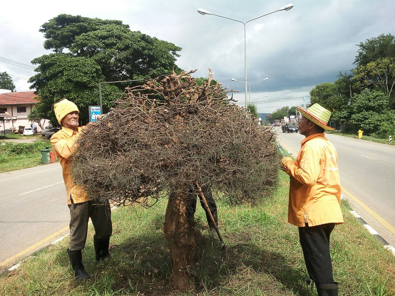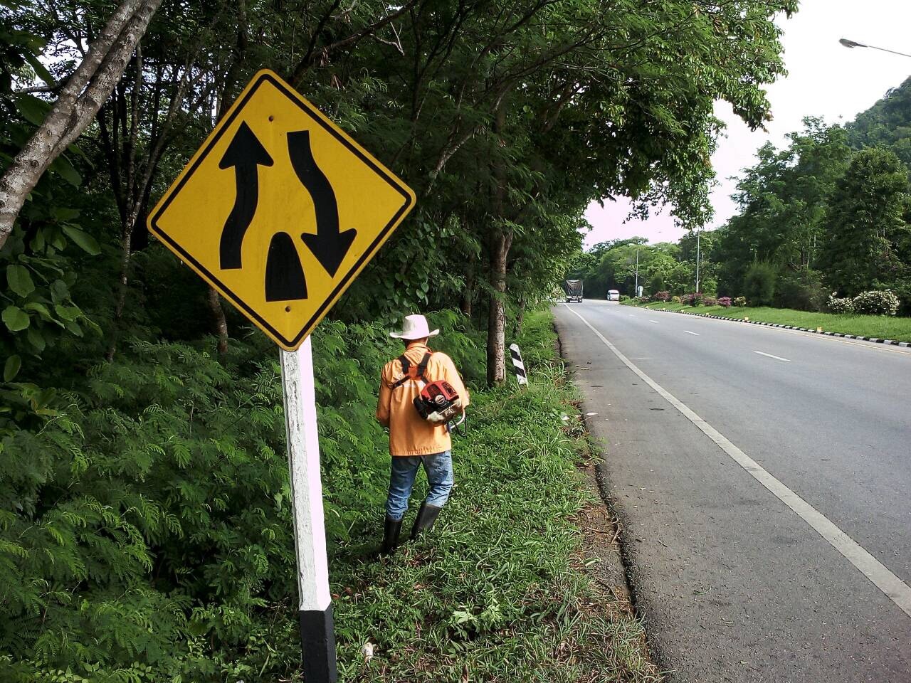 2.ดำเนินการตัดแต่งทรงต้นสนบริเวณเกาะกลาง (ตัดทำทรงใหม่ ครั้งแรกจะดูไม่ค่อยสวยครับ) ในทล.323 ตอนควบคุม 0204 ตอนแยกปากกิเลน - น้ำตกไทรโยคใหญ่ เริ่ม ช่วง กม.119+750- 122+350 **ของเดิมสูงเวลาตัดแต่งลำบาก**