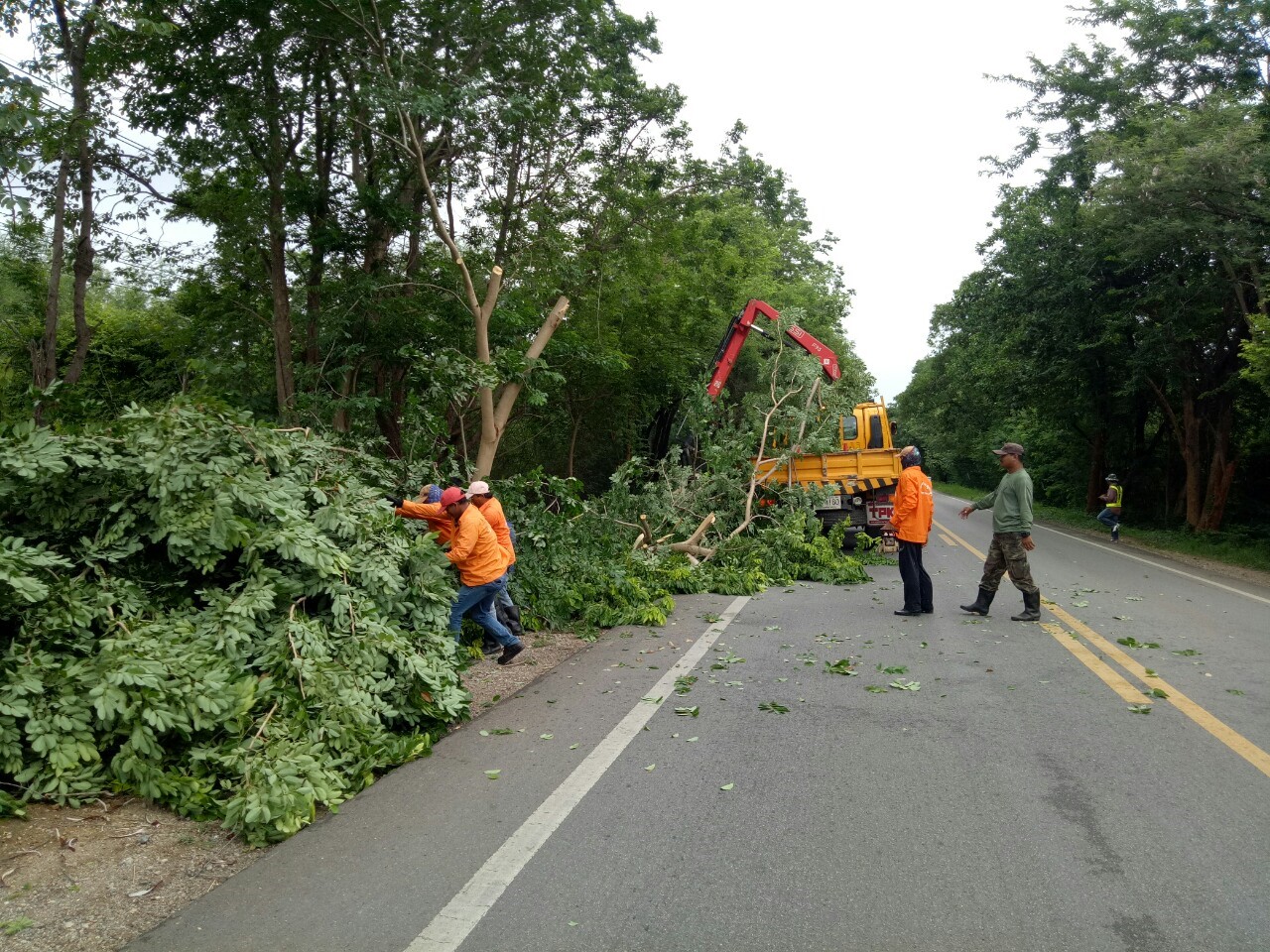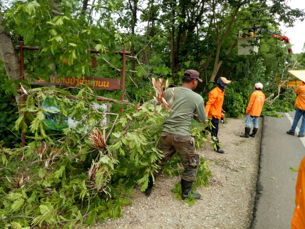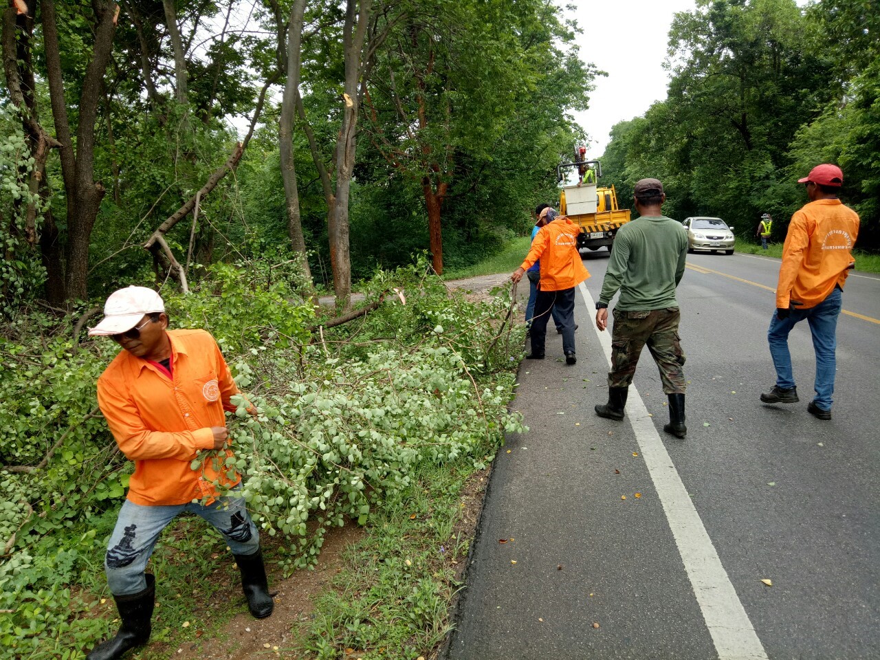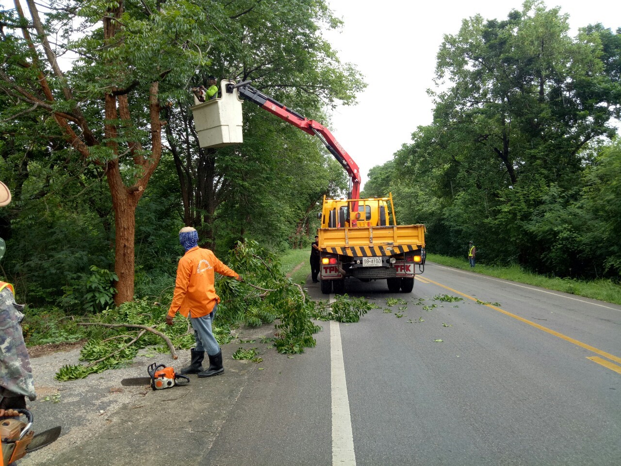 1.ดำเนินการตัดแต่งกิ่งไม้ที่ยื่นล้ำเข้ามาในผิวจราจร ทล.31990102 ตอน ท่าพะเนียด - ช่องสะเดา เริ่ม กม.17+500 - กม.18+320