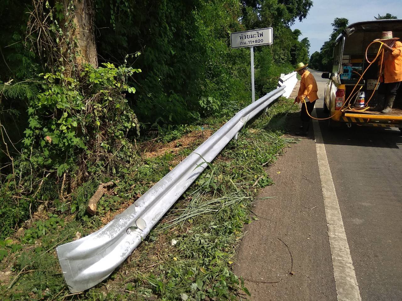 3.ดำเนินการกำจัดวัชพืชบริเวณราวกันอันตราย เกาะทางแยก รอบหลักกันโค้ง ทล.3455 ตอนควบคุม 0100 ตอนแยกปากกิเลน - บ้านเก่า ช่วง กม.0+000 - 17+000
