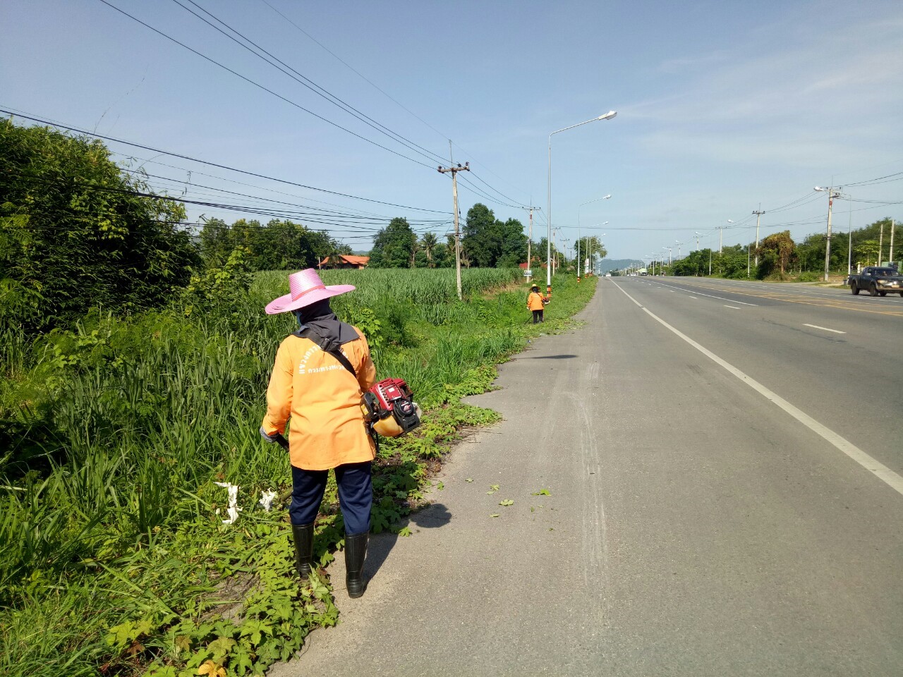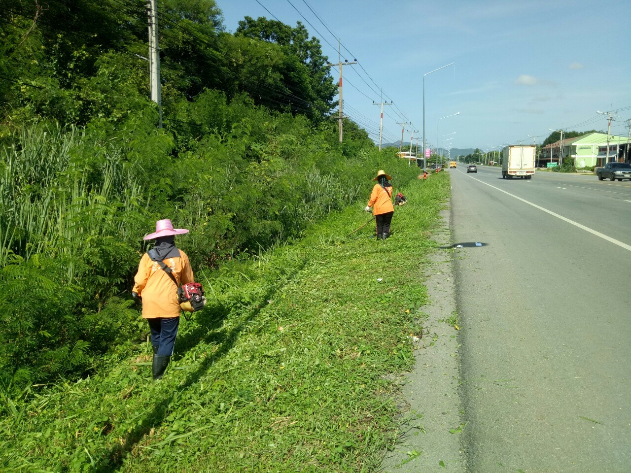 1.ดำเนินการตัดหญ้า ทล.3199 ตอน ท่าพะเนียด - ช่องสะเดา กม.3+500 - กม.5+500