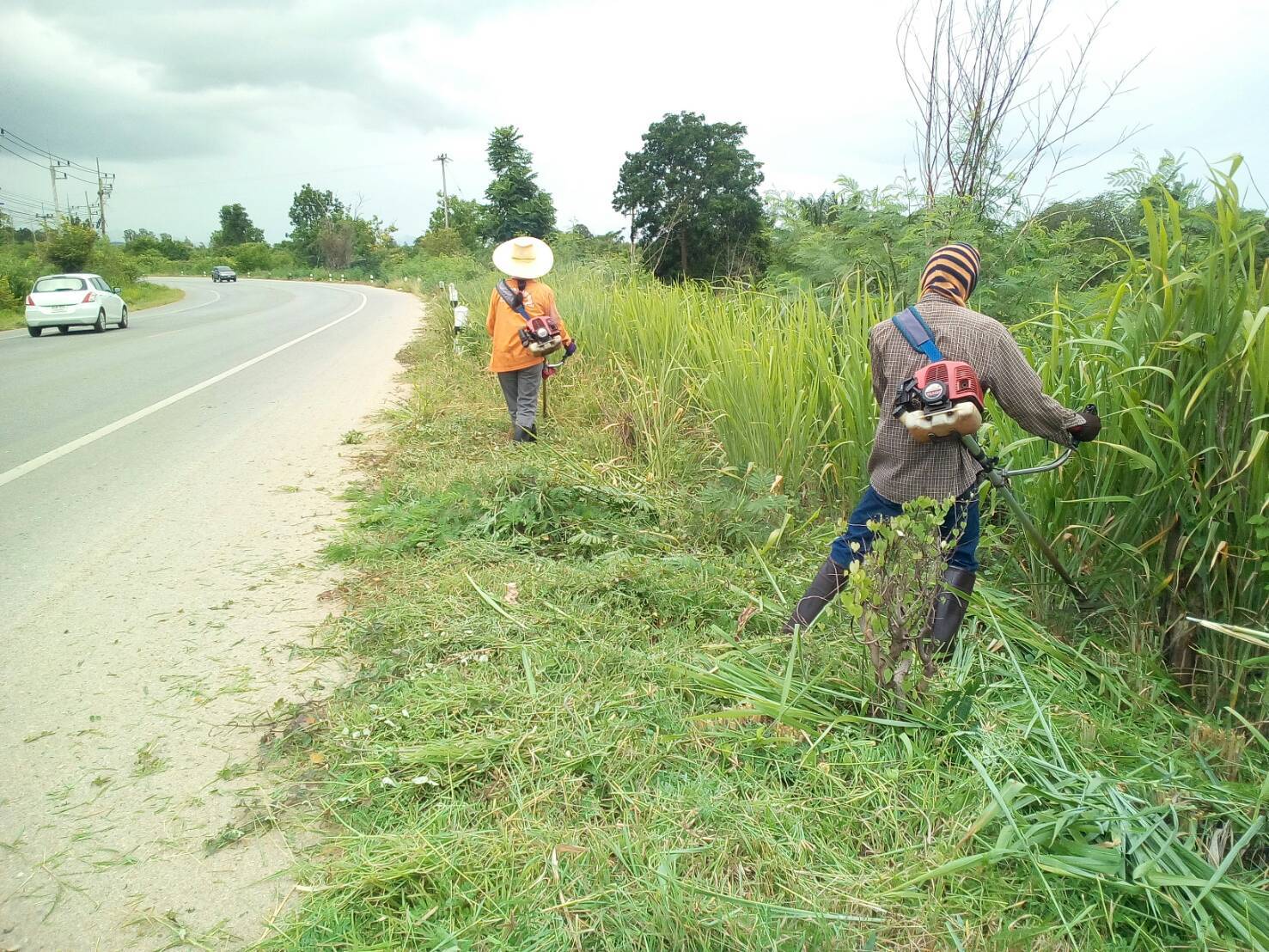 1.ดำเนินการตัดหญ้าไหล่ทาง ทล.3229 กม.13+700 - 18+600