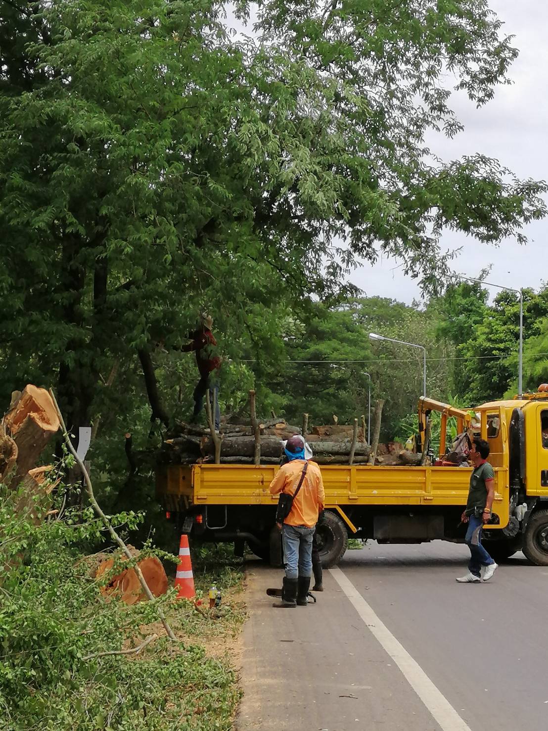 3.ดำเนินตัดแต่งต้นไม้ที่โน้มเอียงเข้ามาบนผิวจราจร ทล.3305 กม.38+000 - 39+000