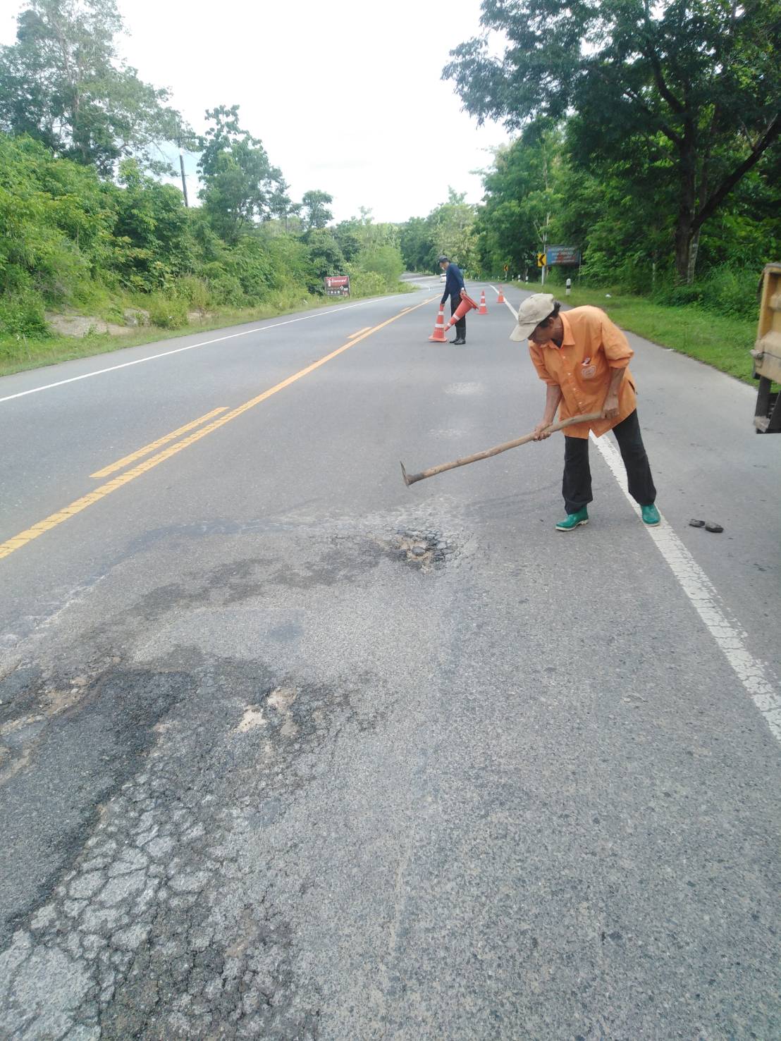 แขวงทางหลวงกาญจนบุรีโดยหมวดทางหลวงทองผาภูมิ ดำเนินการในทางหลวงหมายเลข 323