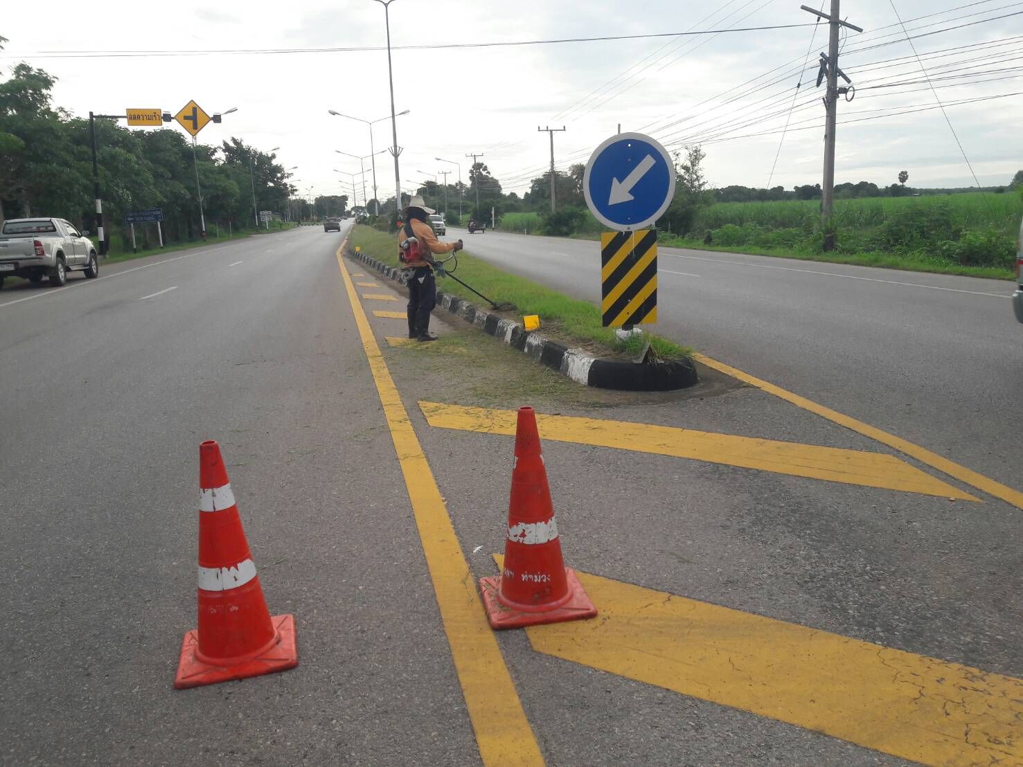 1.ดำเนินการตัดหญ้าและทำความสะอาดเกาะกลาง ทล 3209 กม.30+700-กม.31+200
