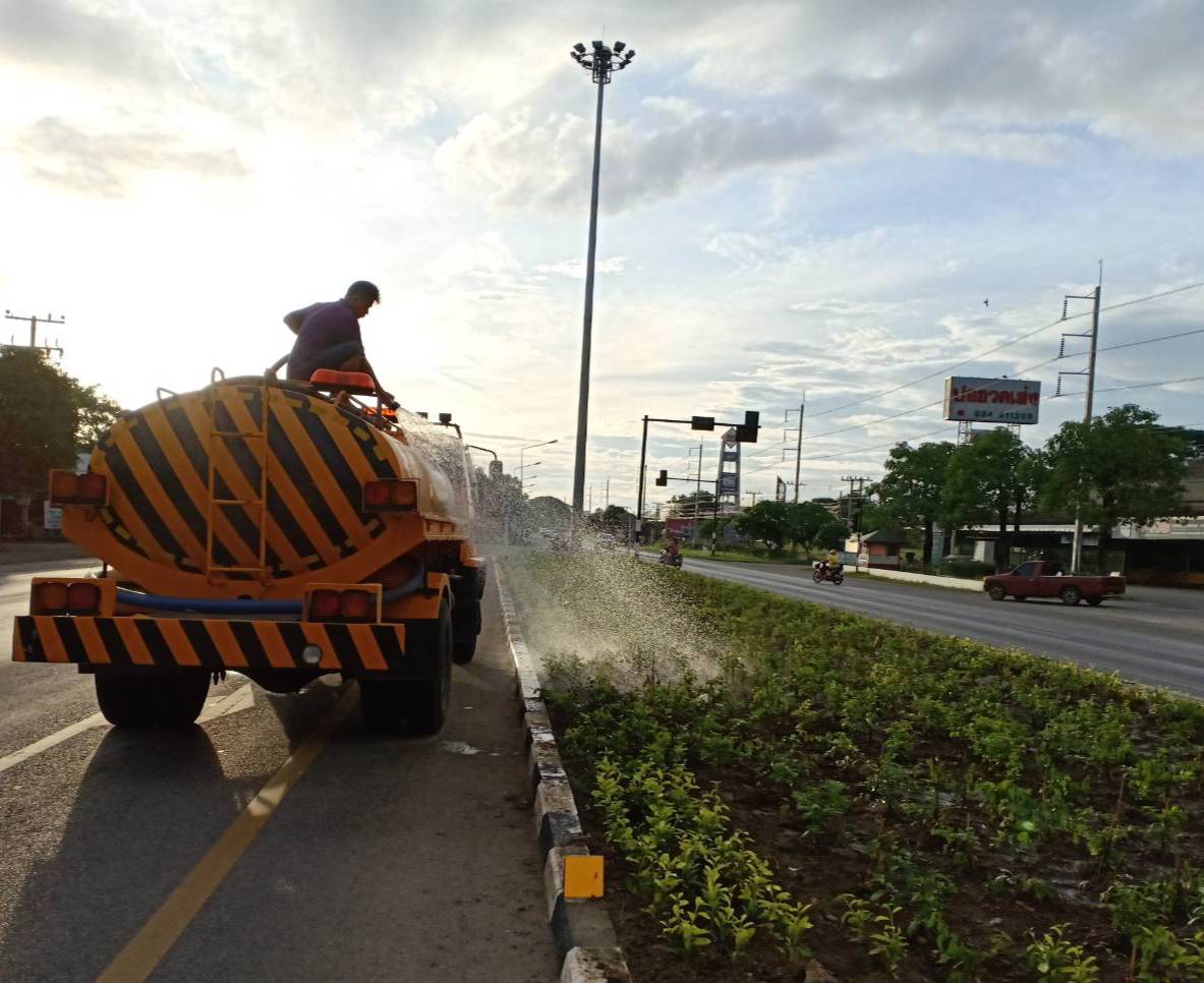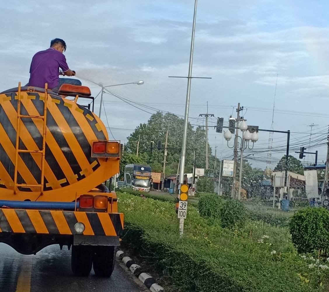 2.งานรดน้ำต้นไม้เกาะกลาง(ต้นไม้ที่ปลูกใหม่) ทล.323 ตอน ท่าเรือ-ท่าน้ำตื้น แยกหนองเสือ,แยกหนองตาบ่ง