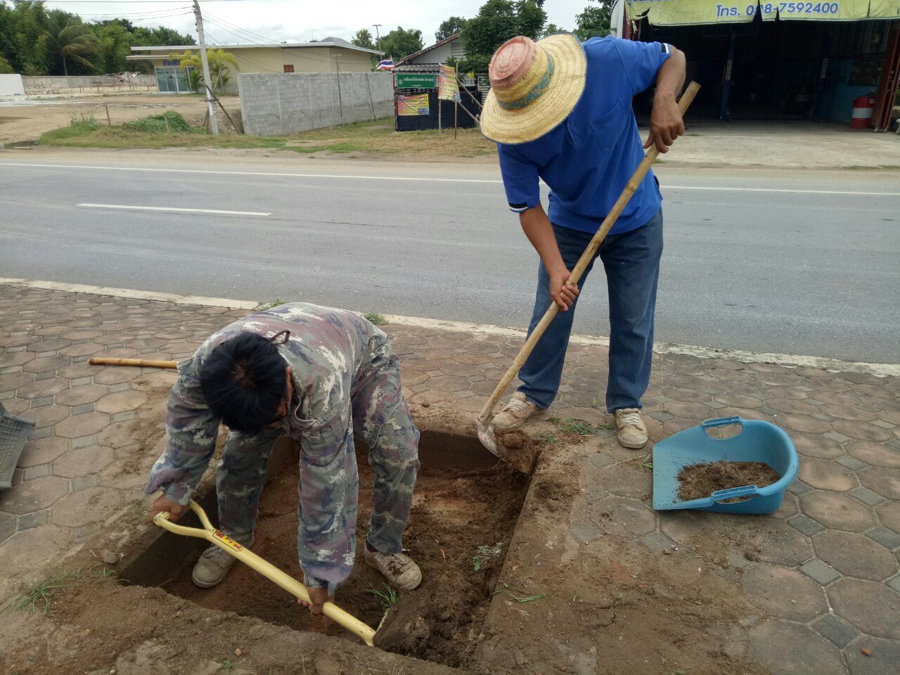 1.ดำเนินการขุดหลุมเตรียมการปรับแต่งภูมิทัศน์บริเวณเกาะกลาง ทล.31990102 ตอน ท่าพะเนียด - ช่องสะเดา