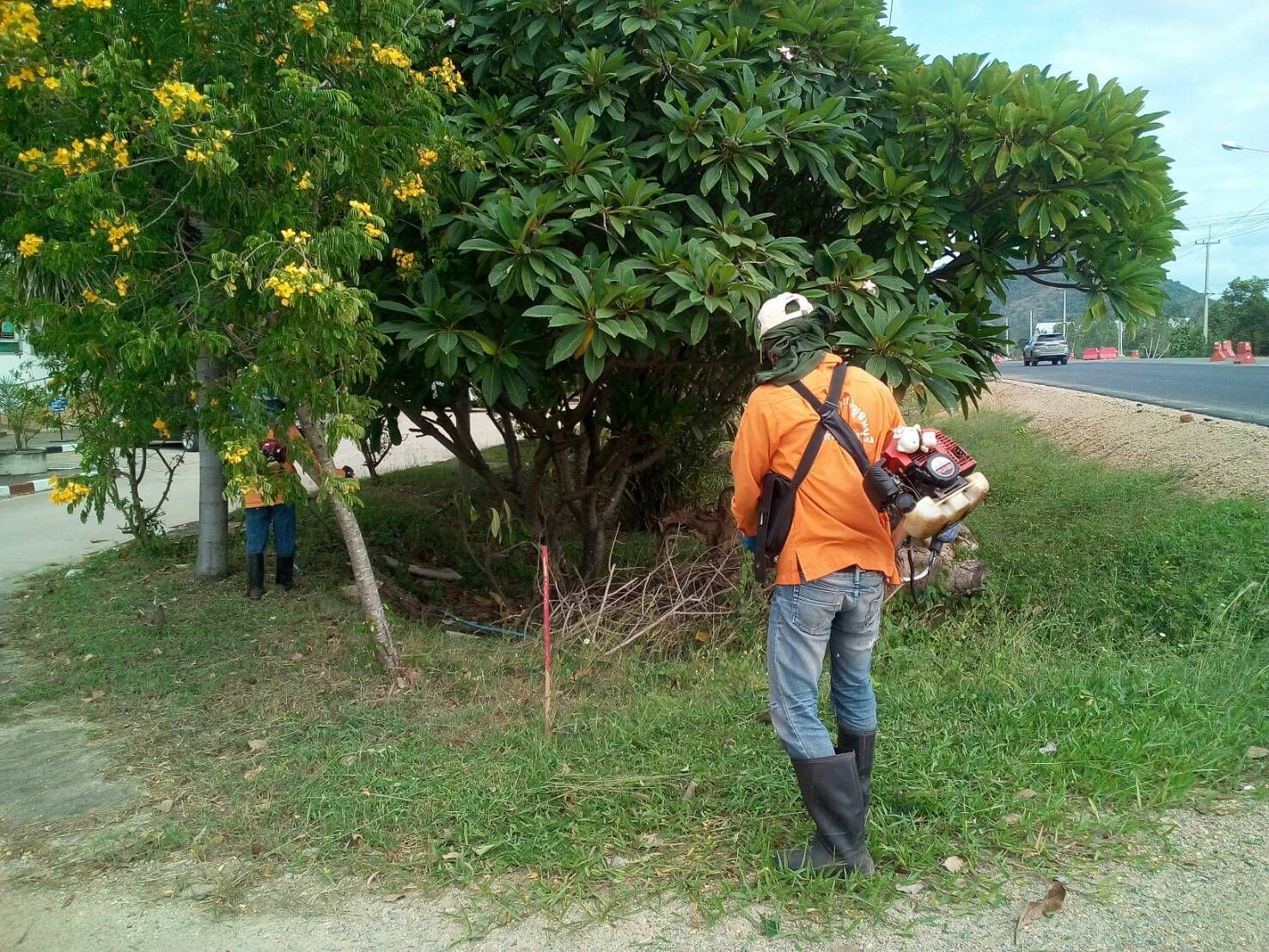 2.สภ.ลาดหญ้าขอความอนุเคราะห์ตัดหญ้าภายในสำนักงาน