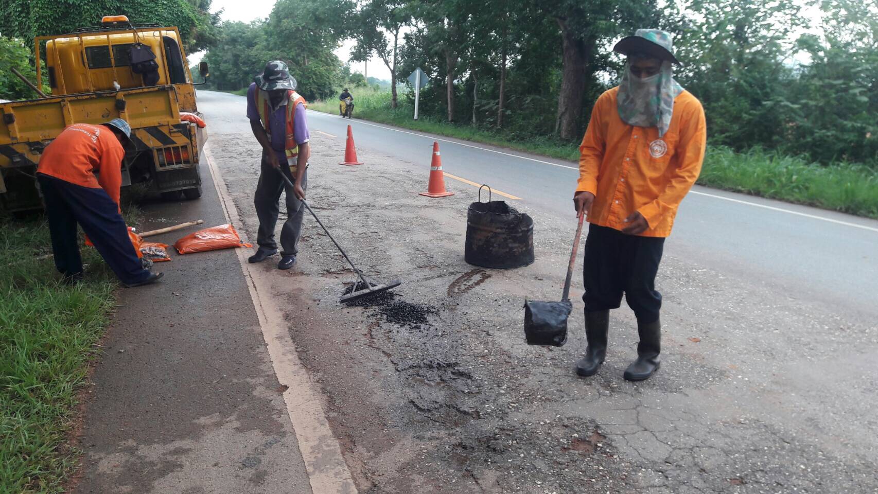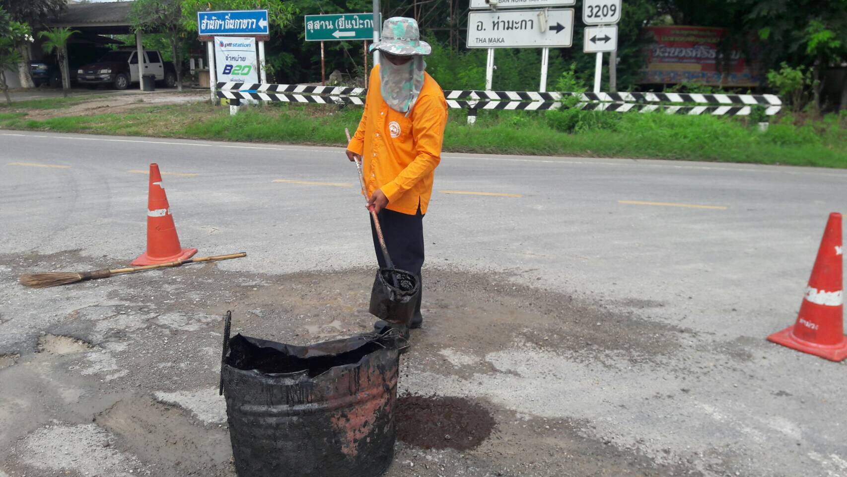 แขวงทางหลวงกาญจนบุรีโดยหมวดทางหลวงท่าม่วง ดำเนินการในทางหลวงหมายเลข 3209