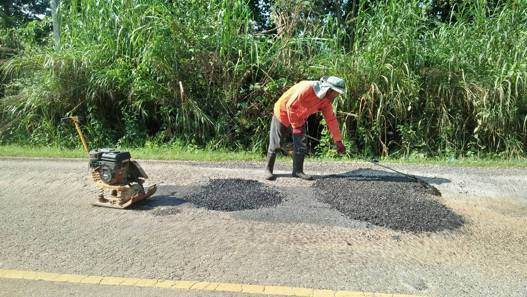 แขวงทางหลวงกาญจนบุรีโดยหมวดทางหลวงสังขละบุรี ดำเนินการในทางหลวงหมายเลข 323