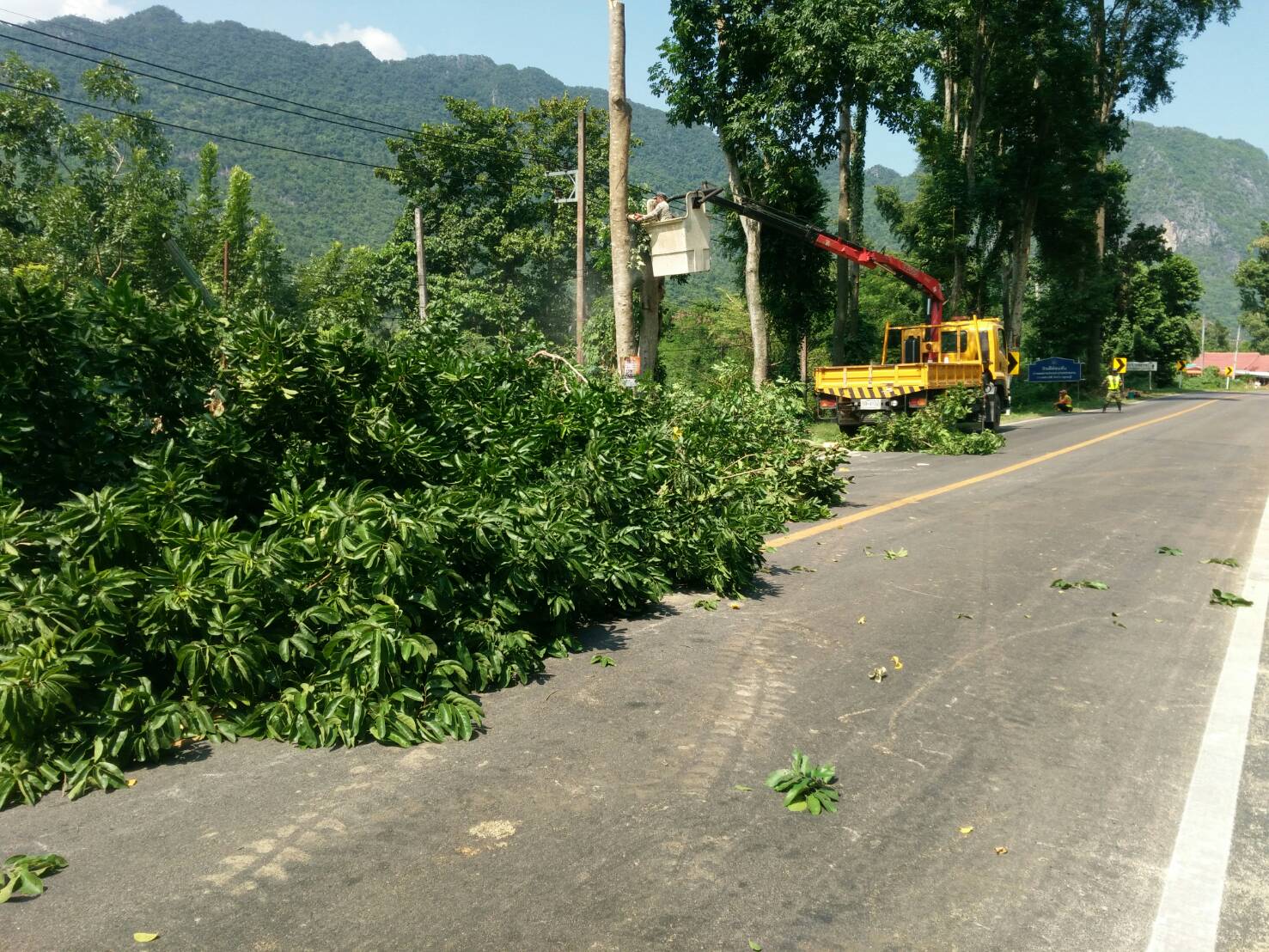 1.ดำเนินการตัดแต่งต้นไม้ป้องกันต้นไม้ล้มทับผิวจราจรในช่วงพายุฝน ทล.31990103 ตอน ช่องสะเดา - ศรีสวัสดิ์ เริ่ม กม.48+400 - กม.48+600 LT.
