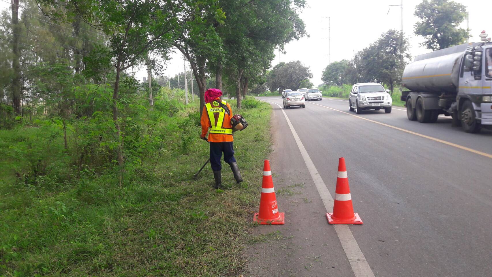 1.ดำเนินการตัดหญ้าสองข้างทาง