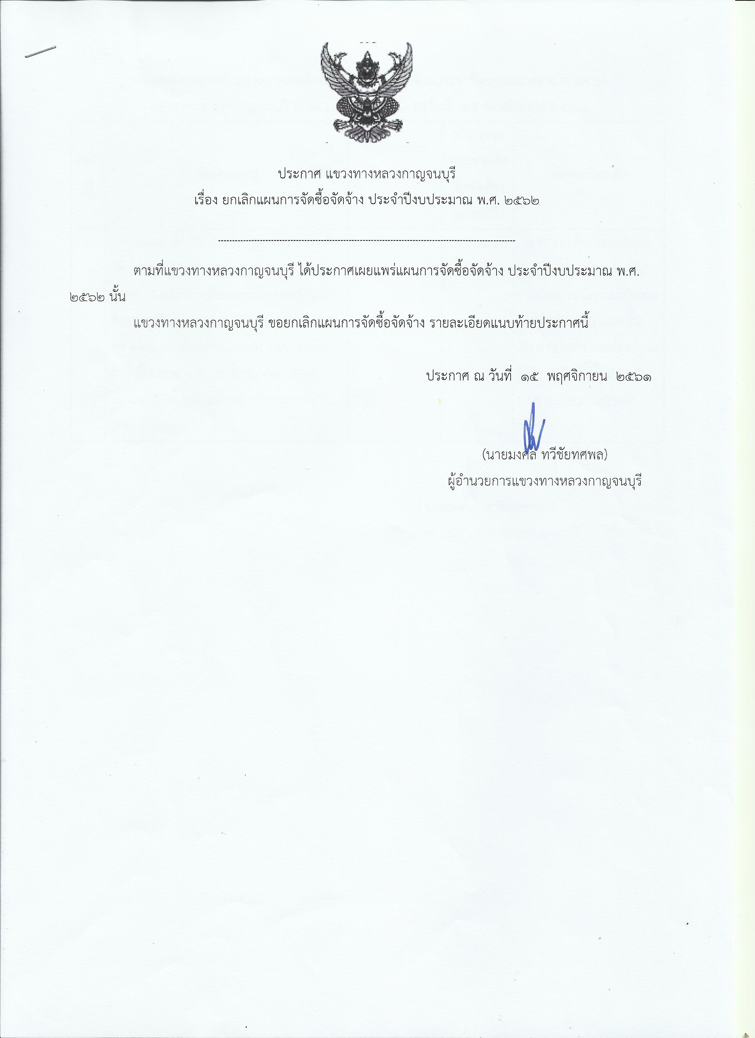 ประกาศเรื่อง ยกเลิกแผนการจัดซื้อจัดจ้าง