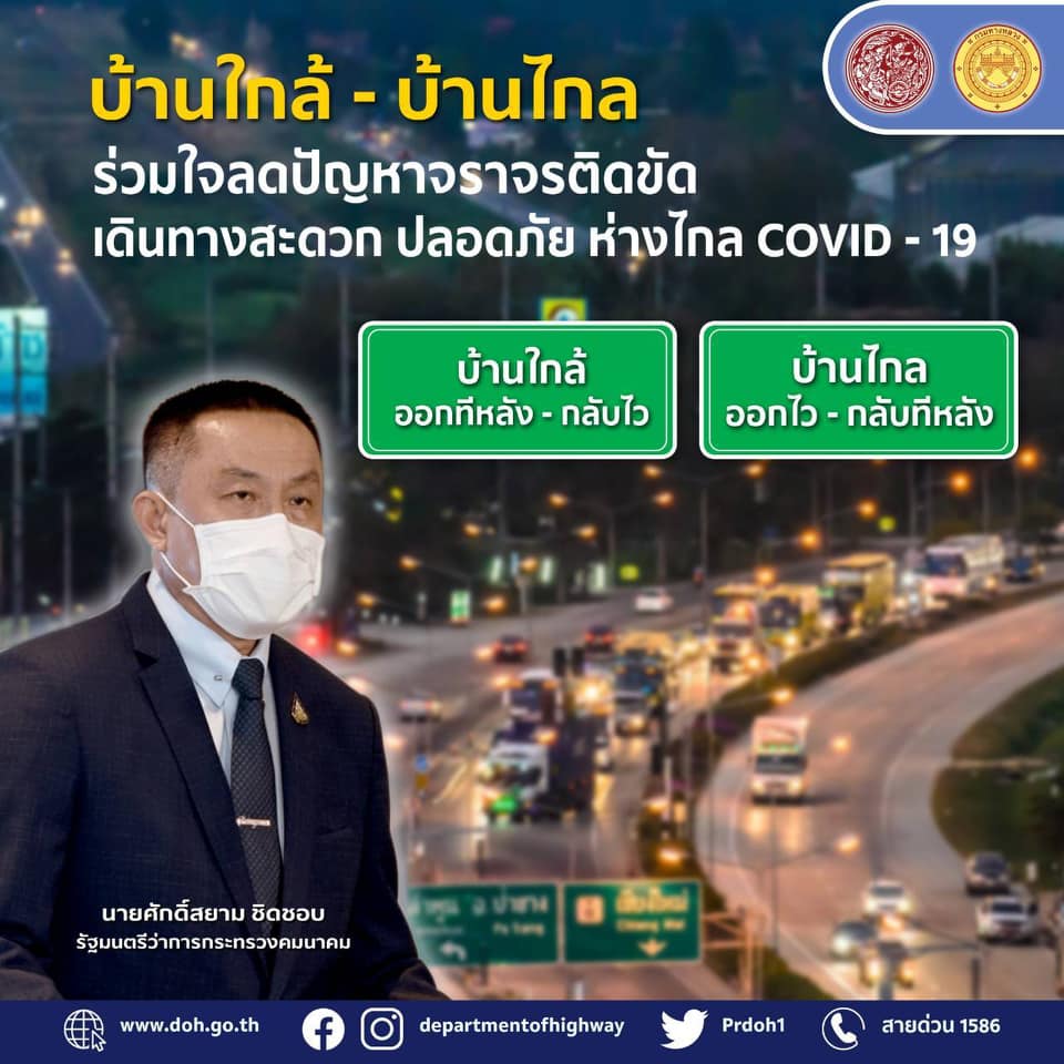 ข้อมูลข่าว : รมว.คมนาคม เชิญชวนประชาชนร่วมรณรงค์“สงกรานต์ 2565 บ้านใกล้-บ้านไกล ร่วมใจลดปัญหาจราจรติดขัด” เดินทางสะดวกปลอดภัยห่างไกล COVID-19 แนะบ้านใกล้ออกทีหลัง-กลับไว บ้านไกลออกไว-กลับทีหลั