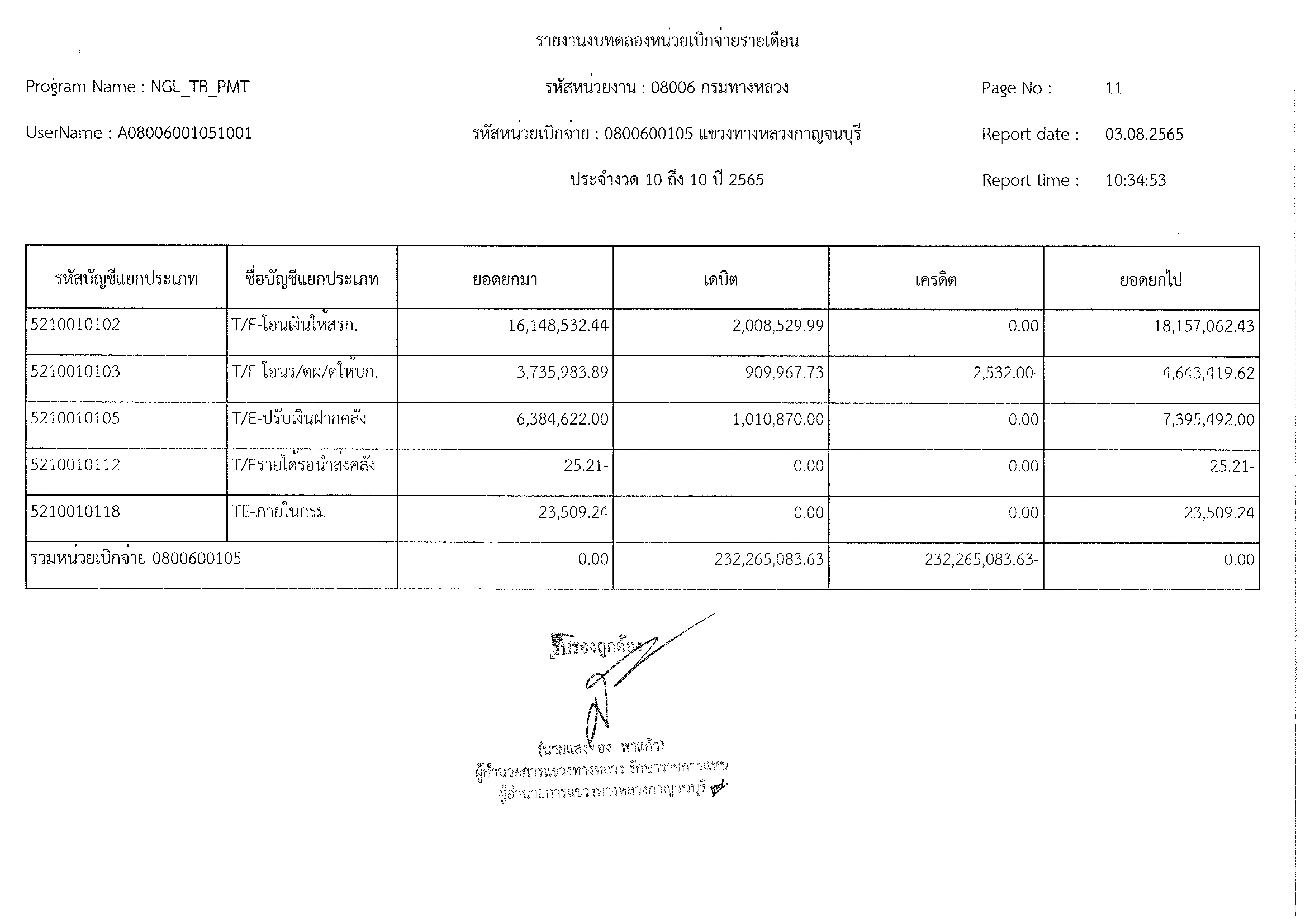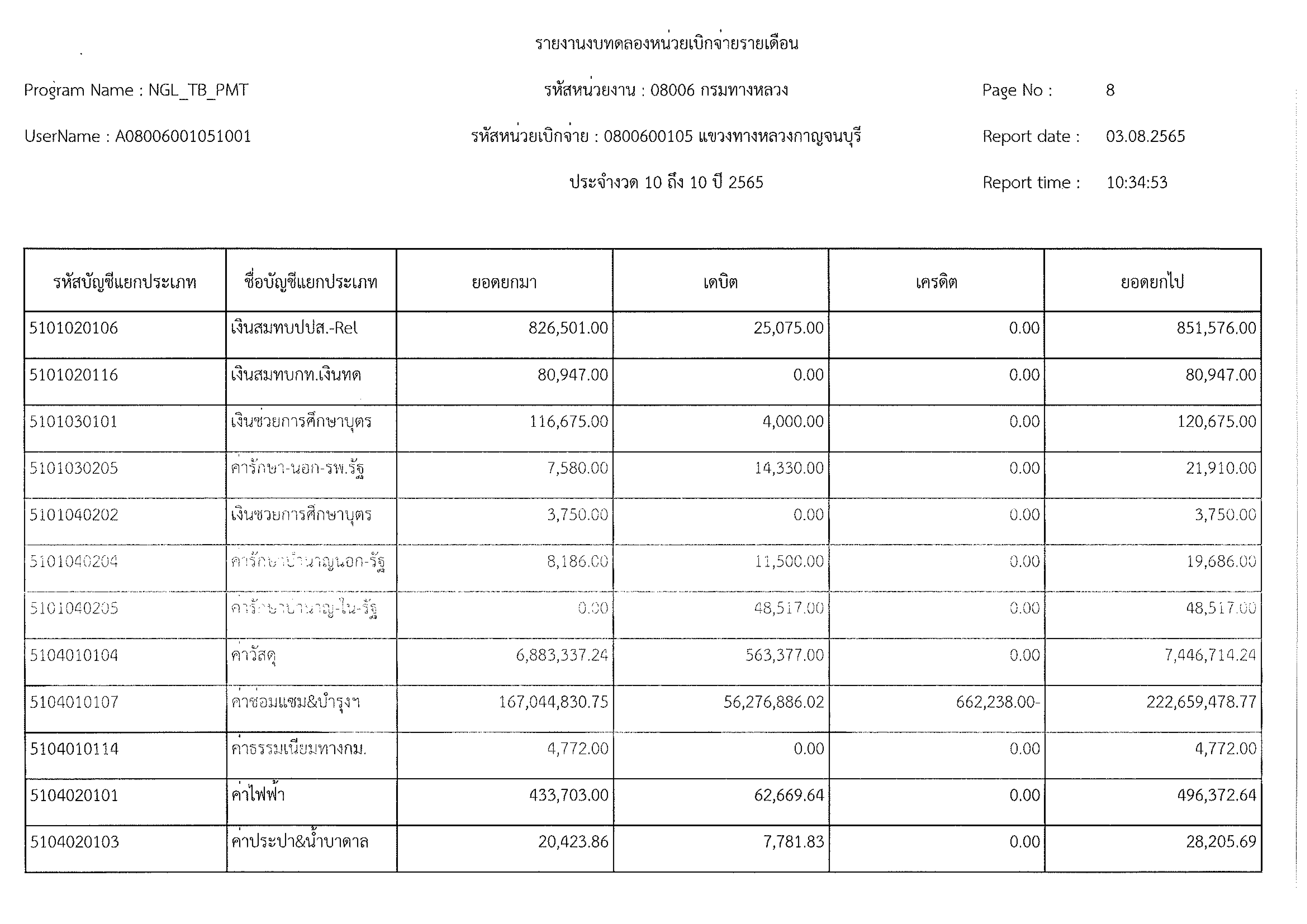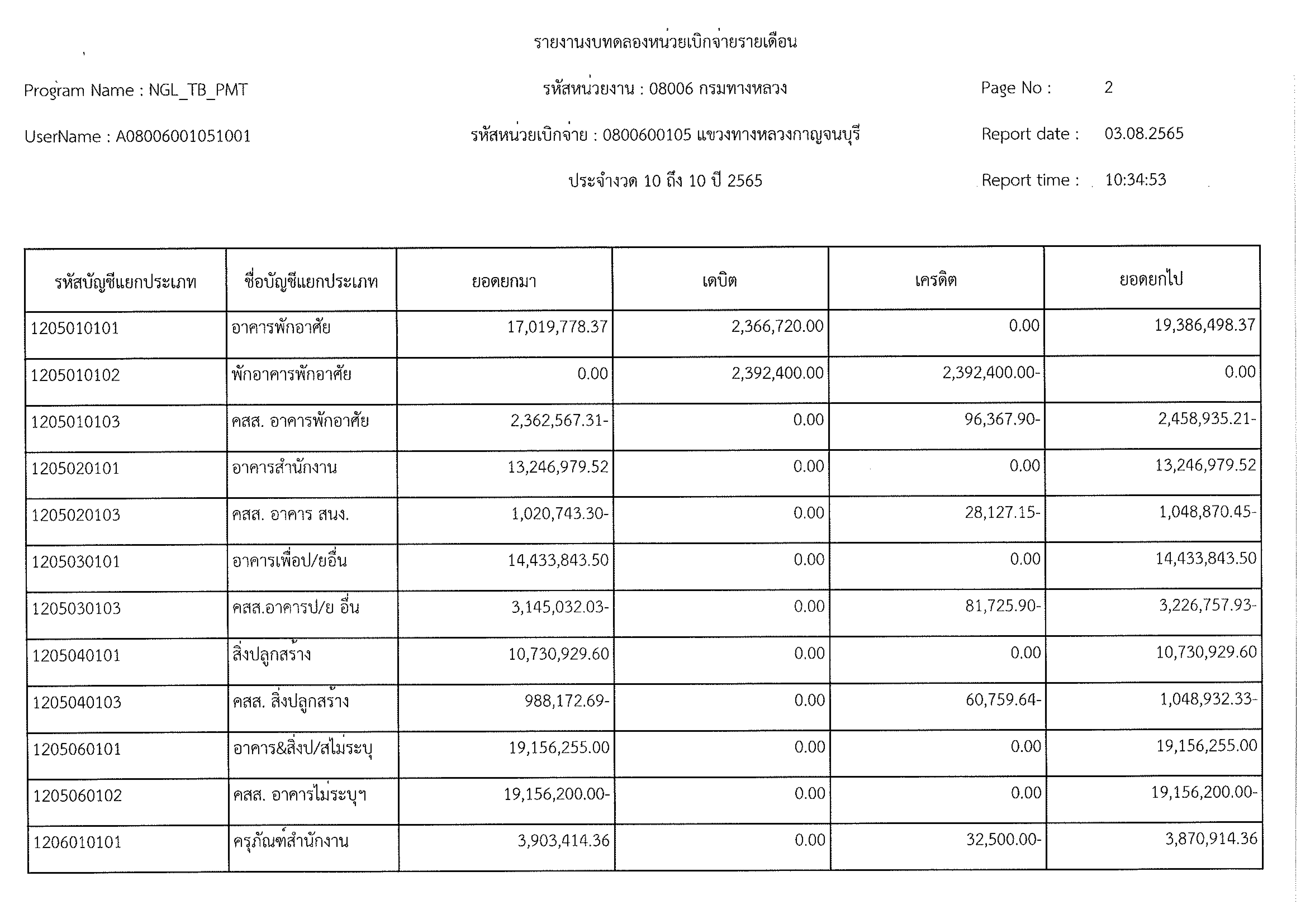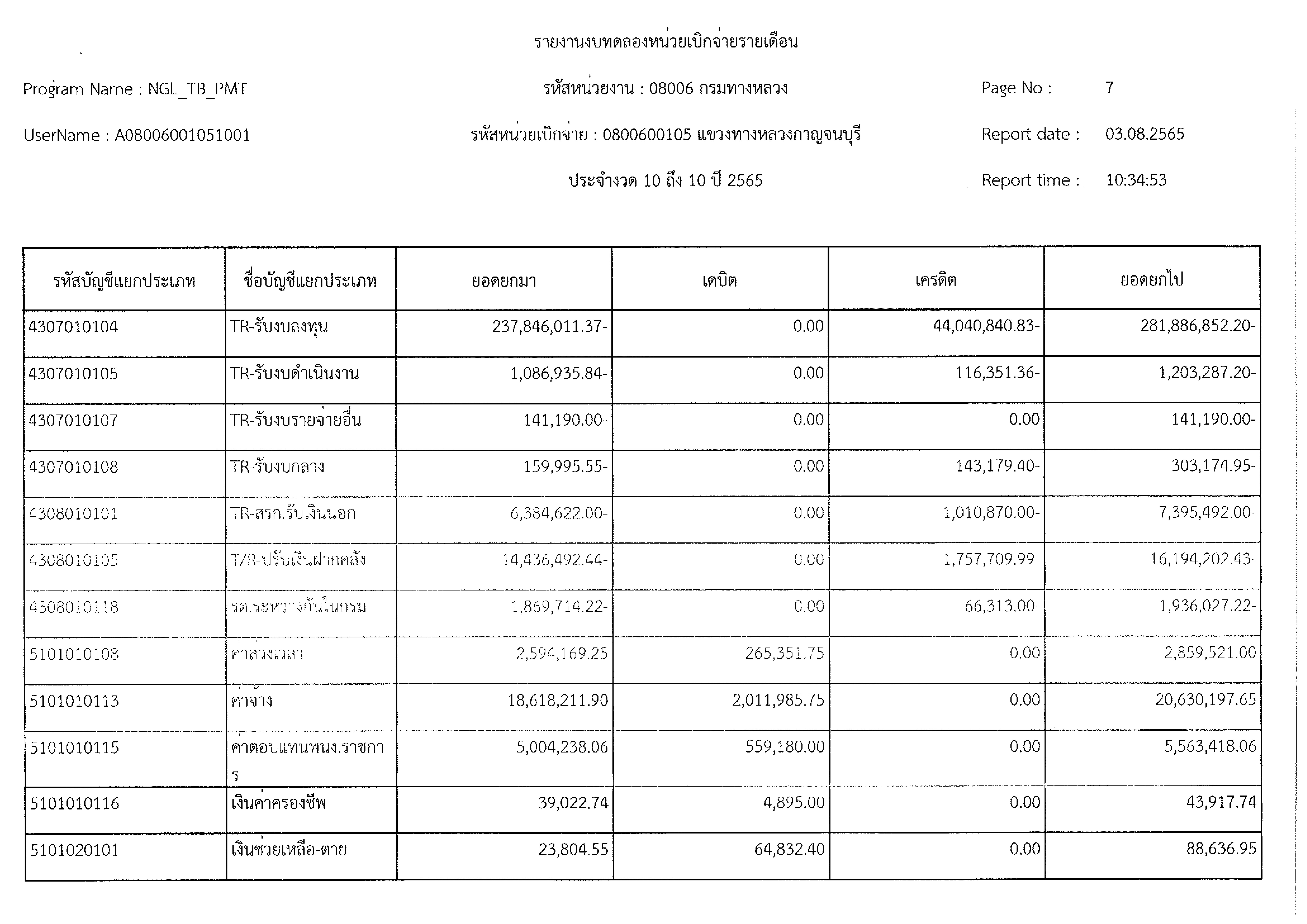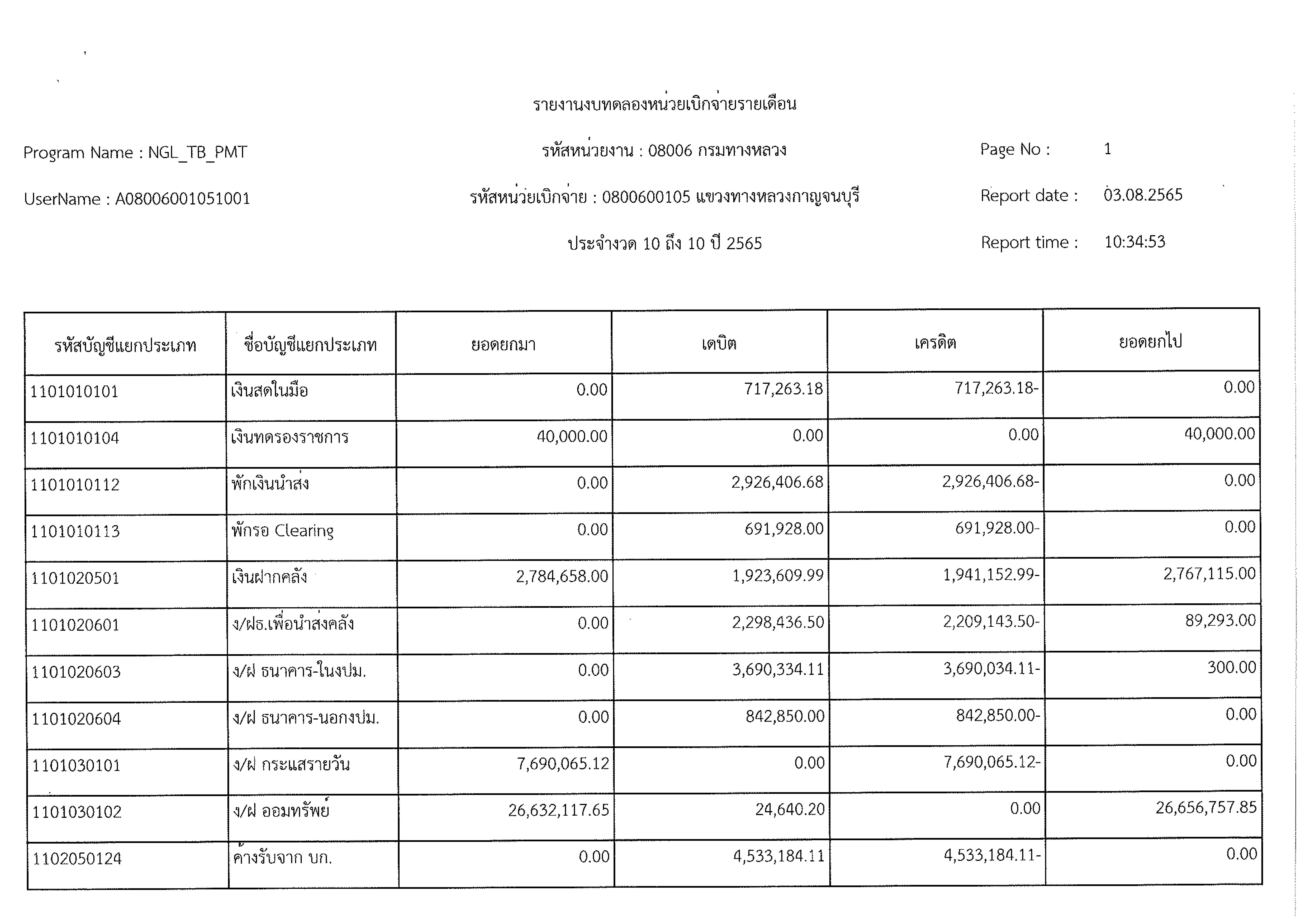 รายงานงบทดลองหน่วยเบิกจ่ายรายเดือน ประจำงวด 10 ประจำปีที่ 2565