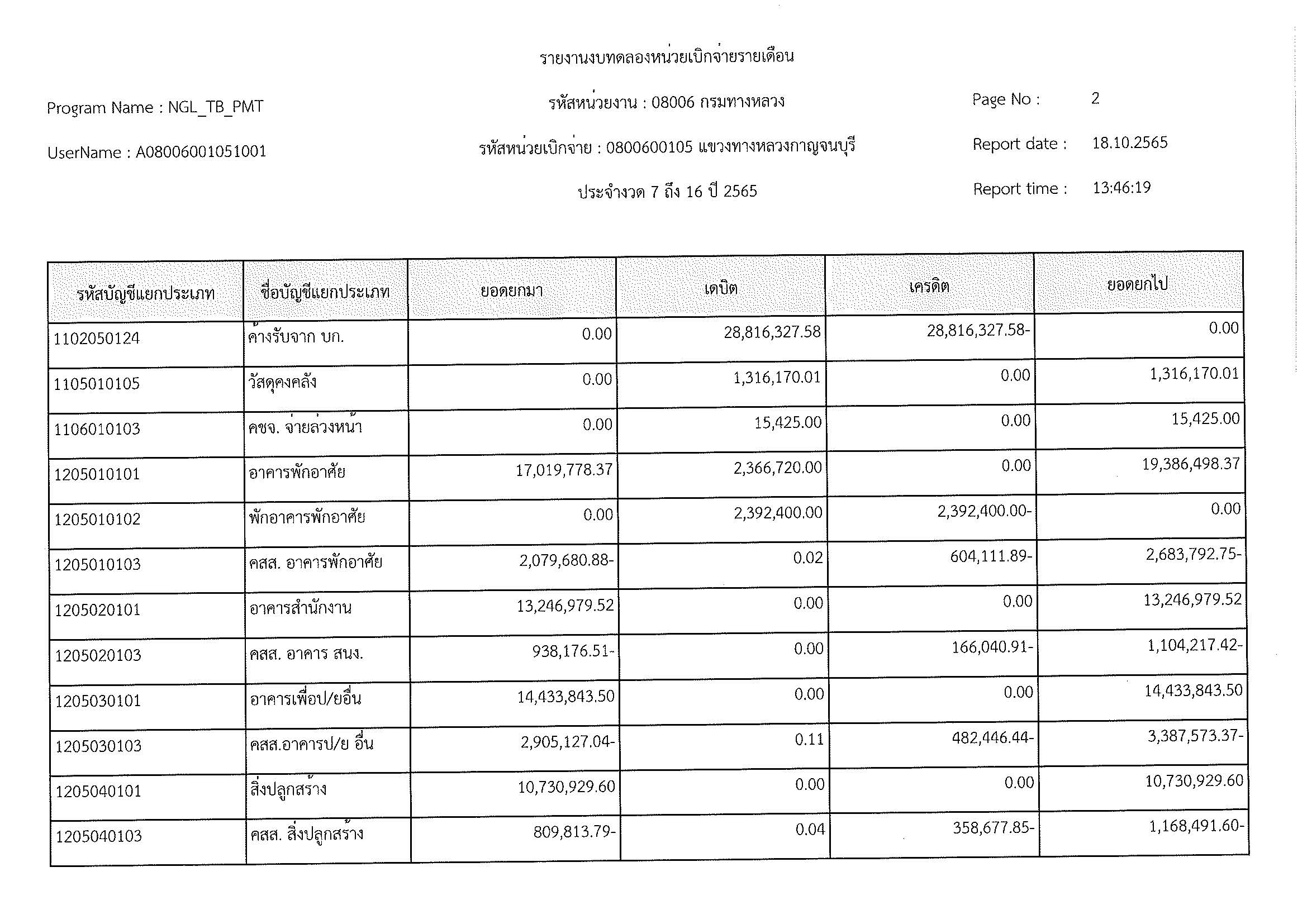 รายงานงบทดลองหน่วยเบิกจ่ายรายเดือน ประจำงวด 12 ประจำปีที่ 2565