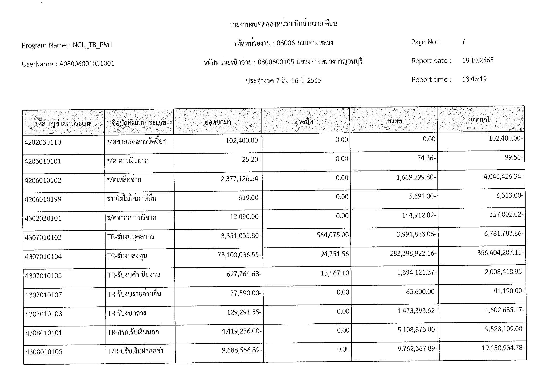 รายงานงบทดลองประจำปี 2565