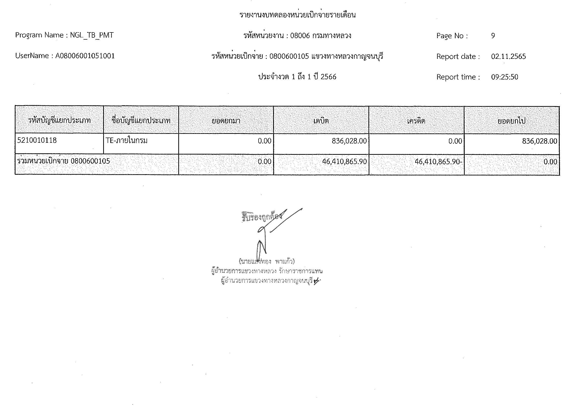 รายงานงบทดลองประจำเดือน ตุลาคม ประจำปีที่ 2565
