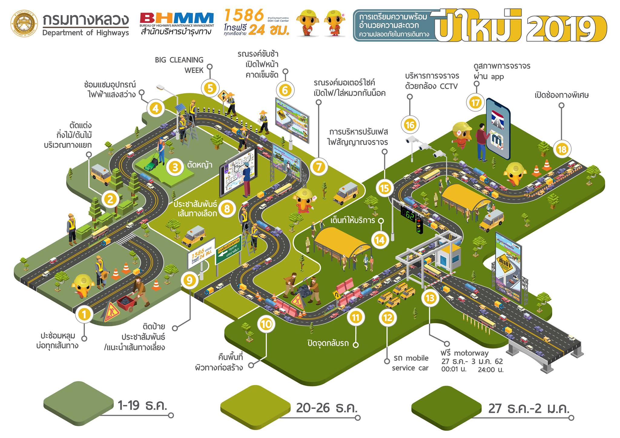 กรมทางหลวง ดำเนินการเตรียมความพร้อม อำนวยความสะดวก ความปลอดภัยเส้นทางในการเดินทาง ปีใหม่ 2019