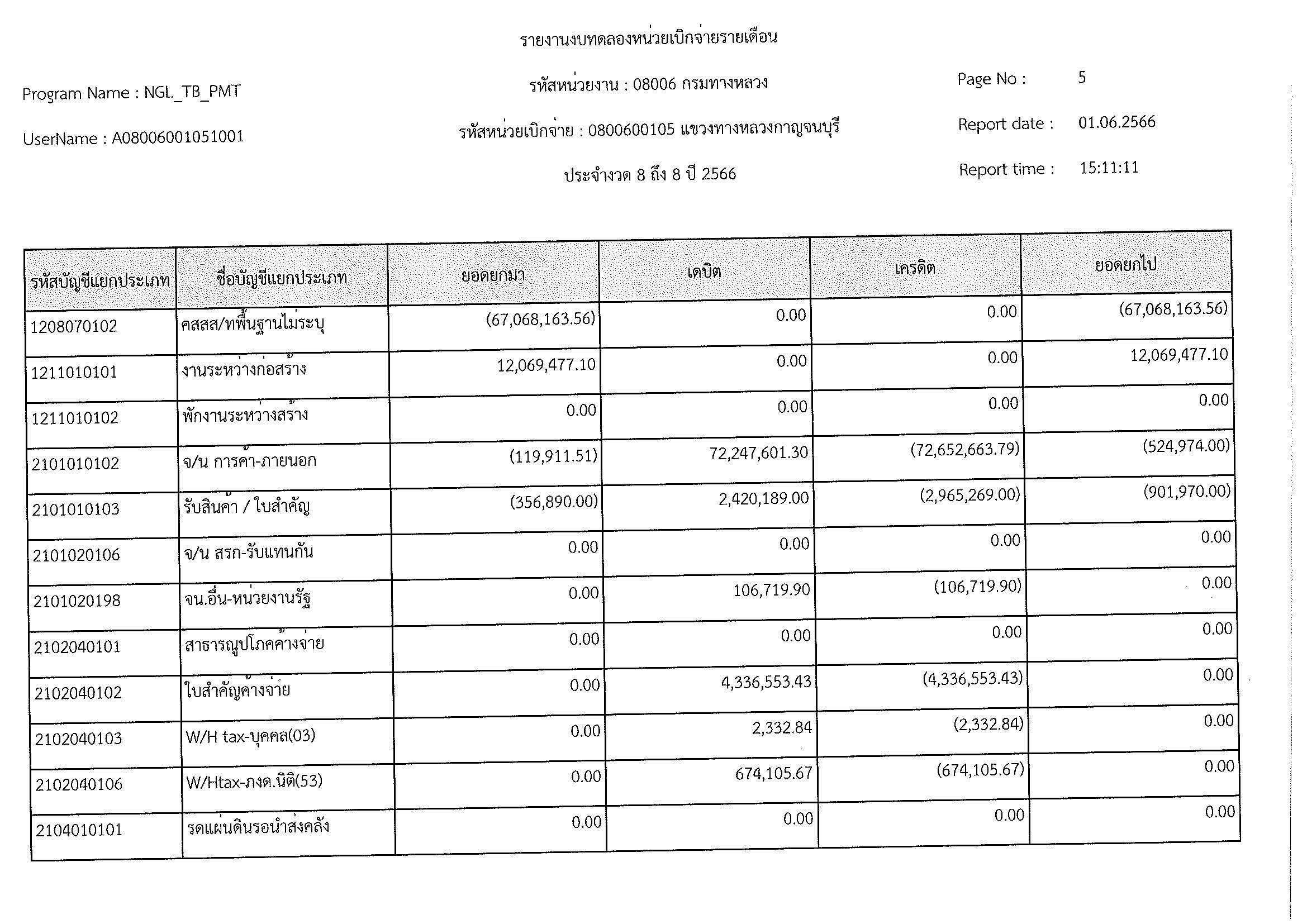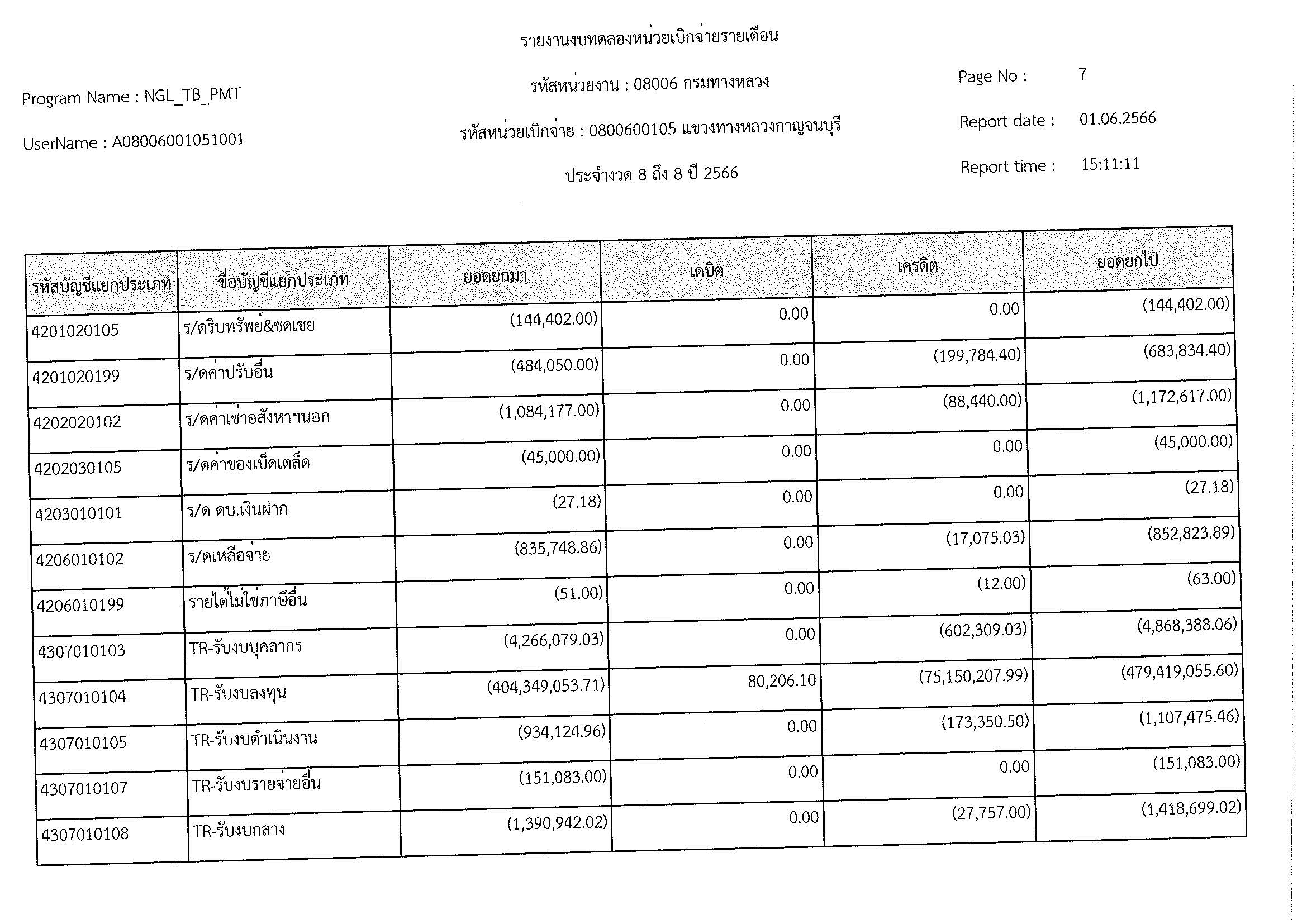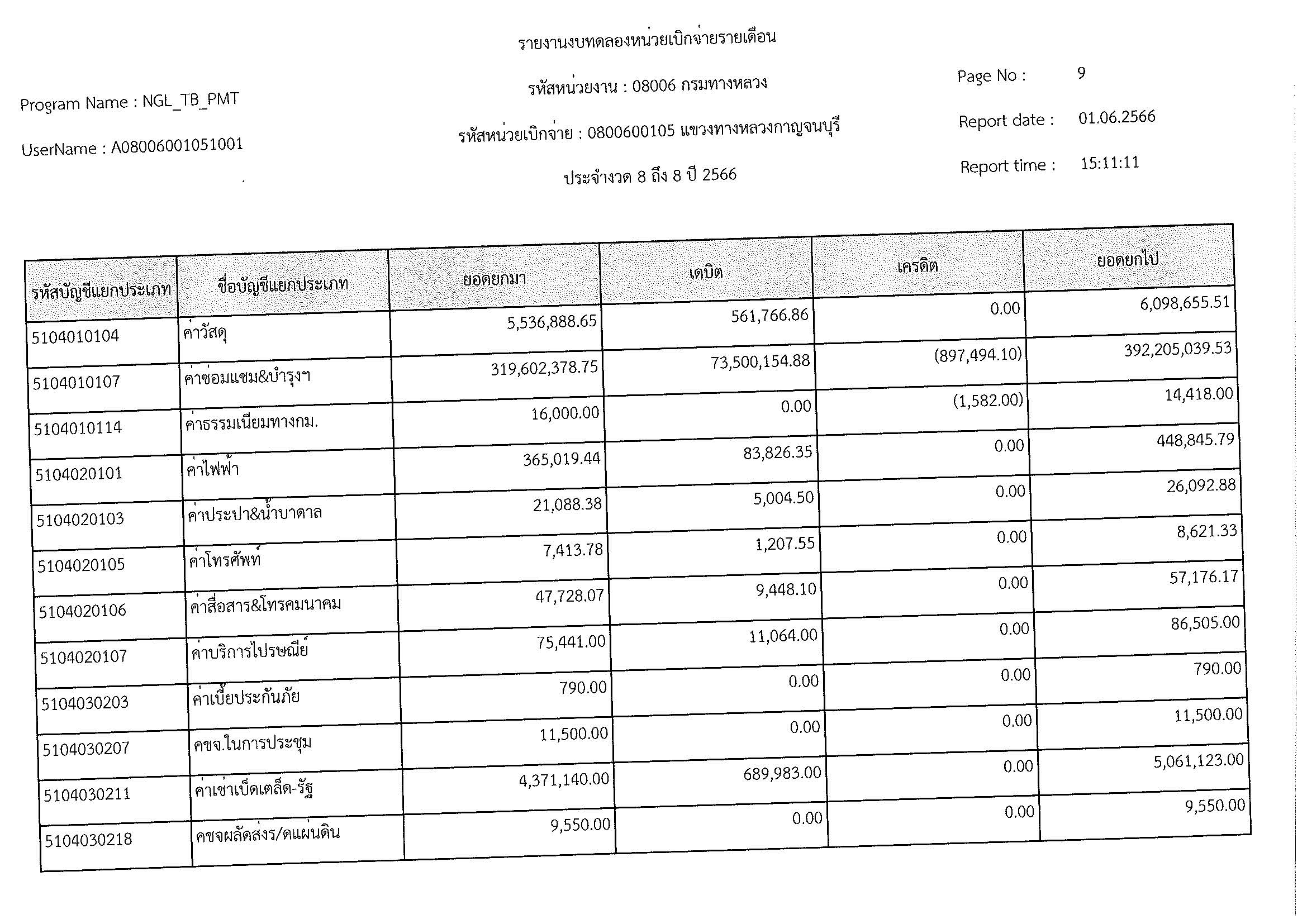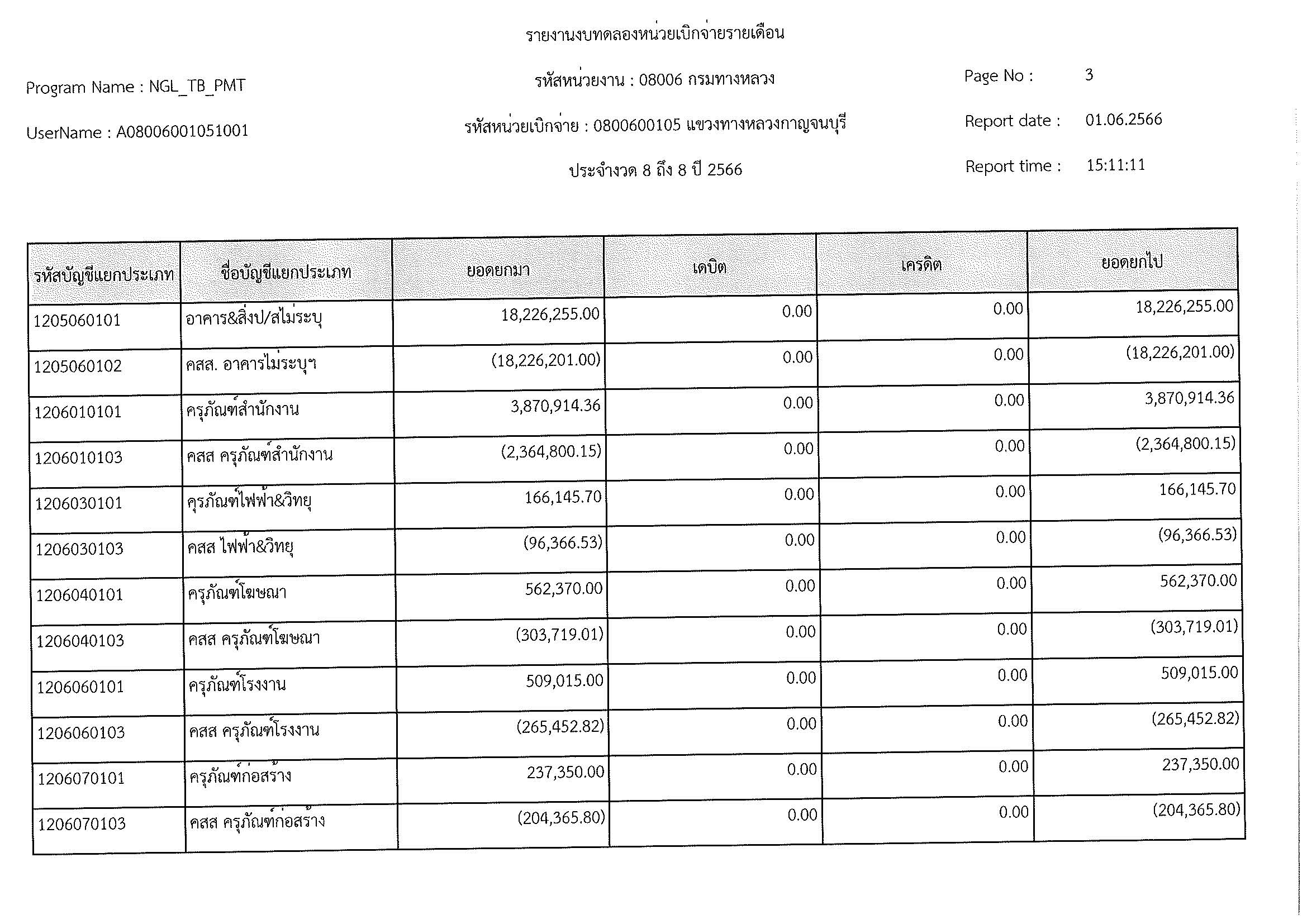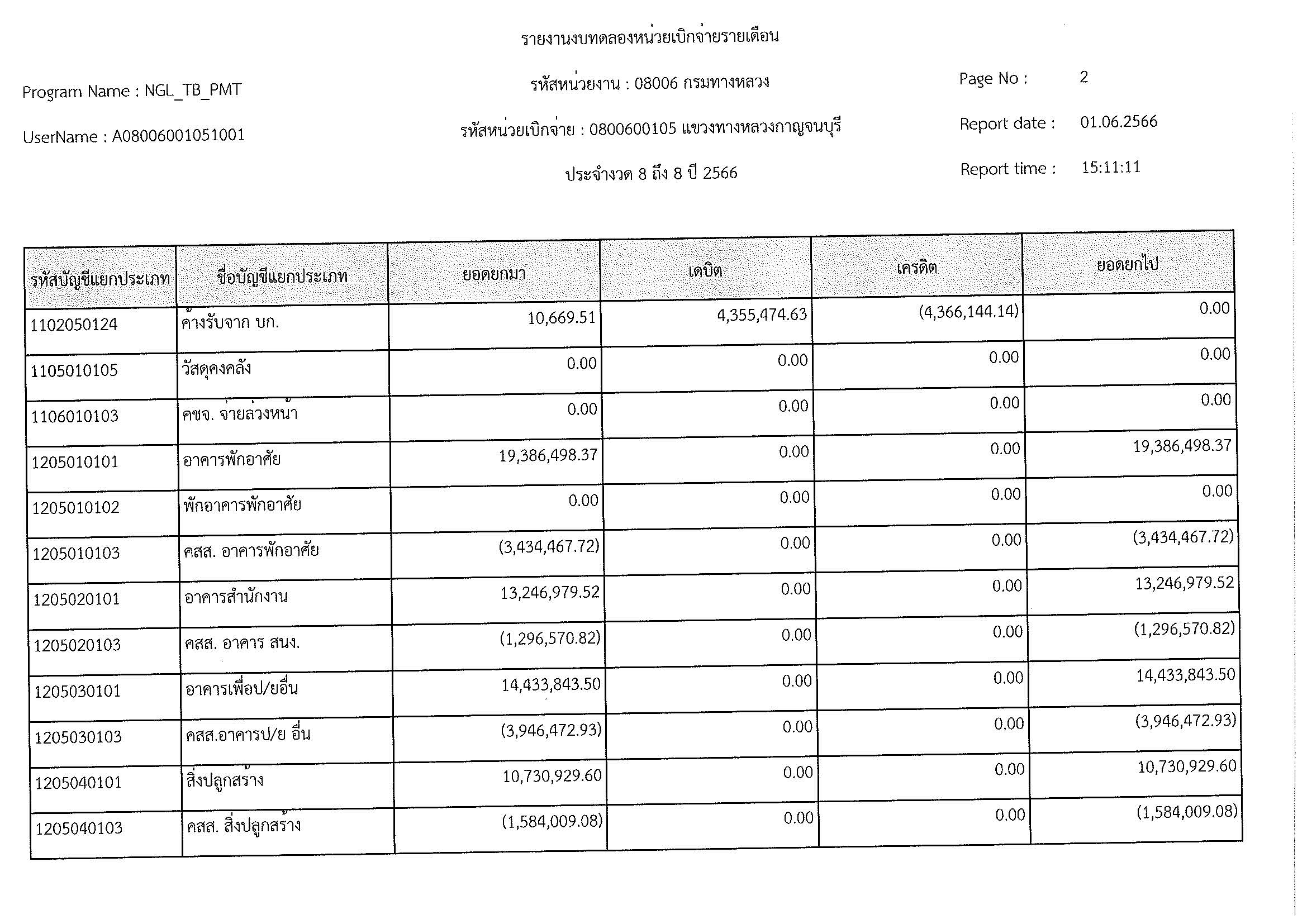 รายงานงบทดลองหน่วยเบิกจ่ายรายเดือน ประจำงวด 8 ประจำปีที่ 2566