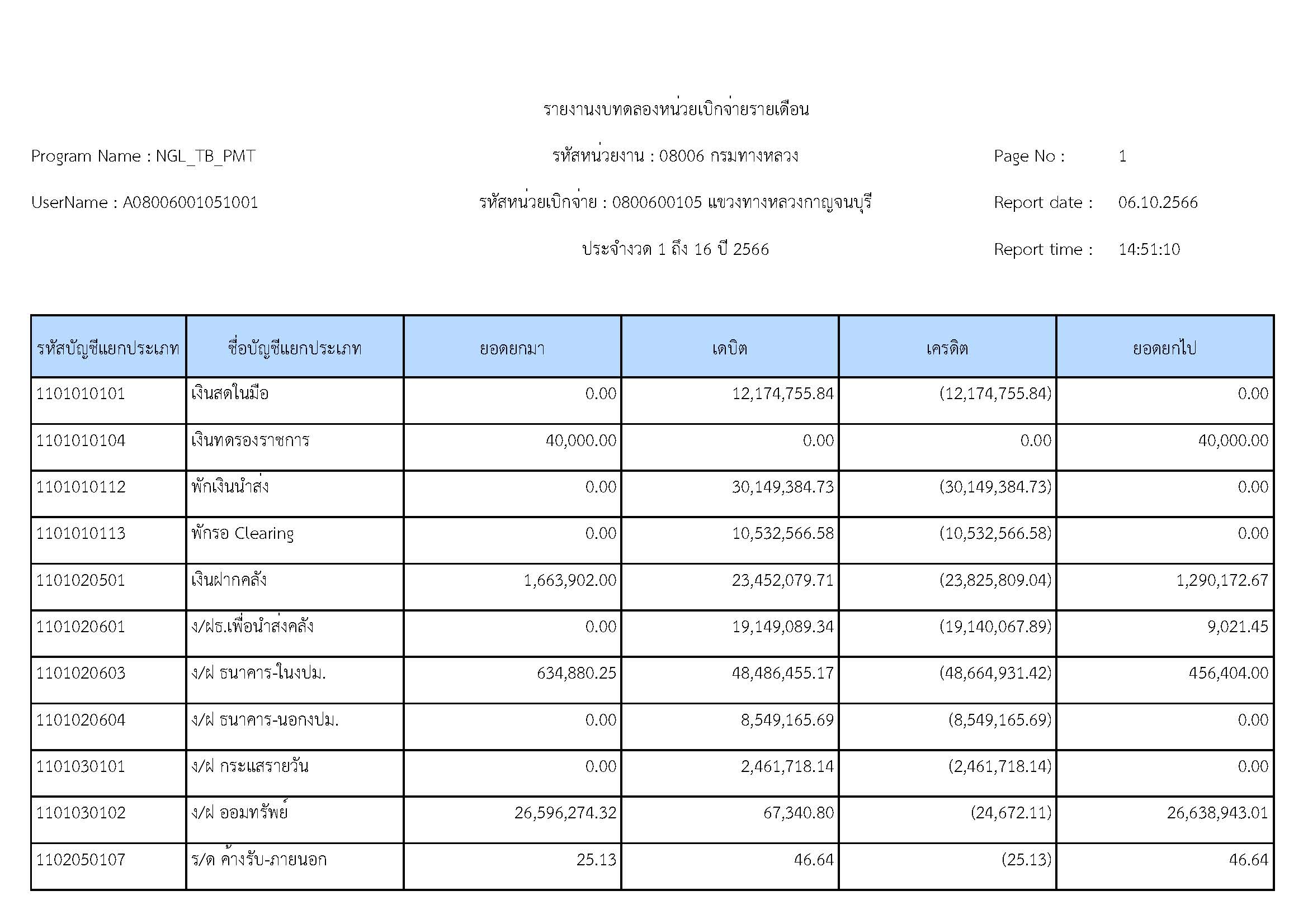 ข้อมูลข่าว : รายงานงบทดลองหน่วยเบิจจ่ายรายปี