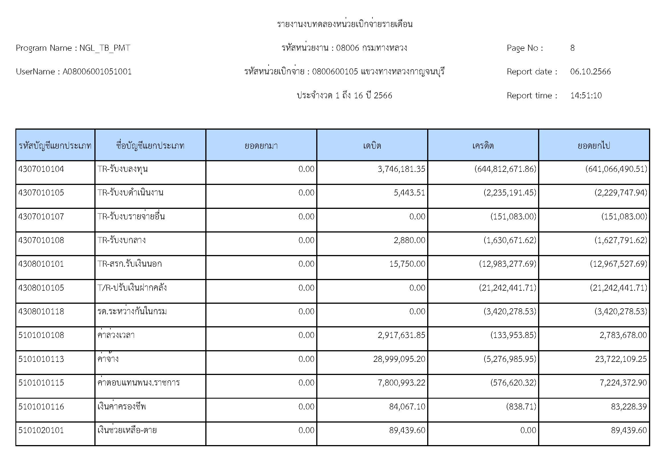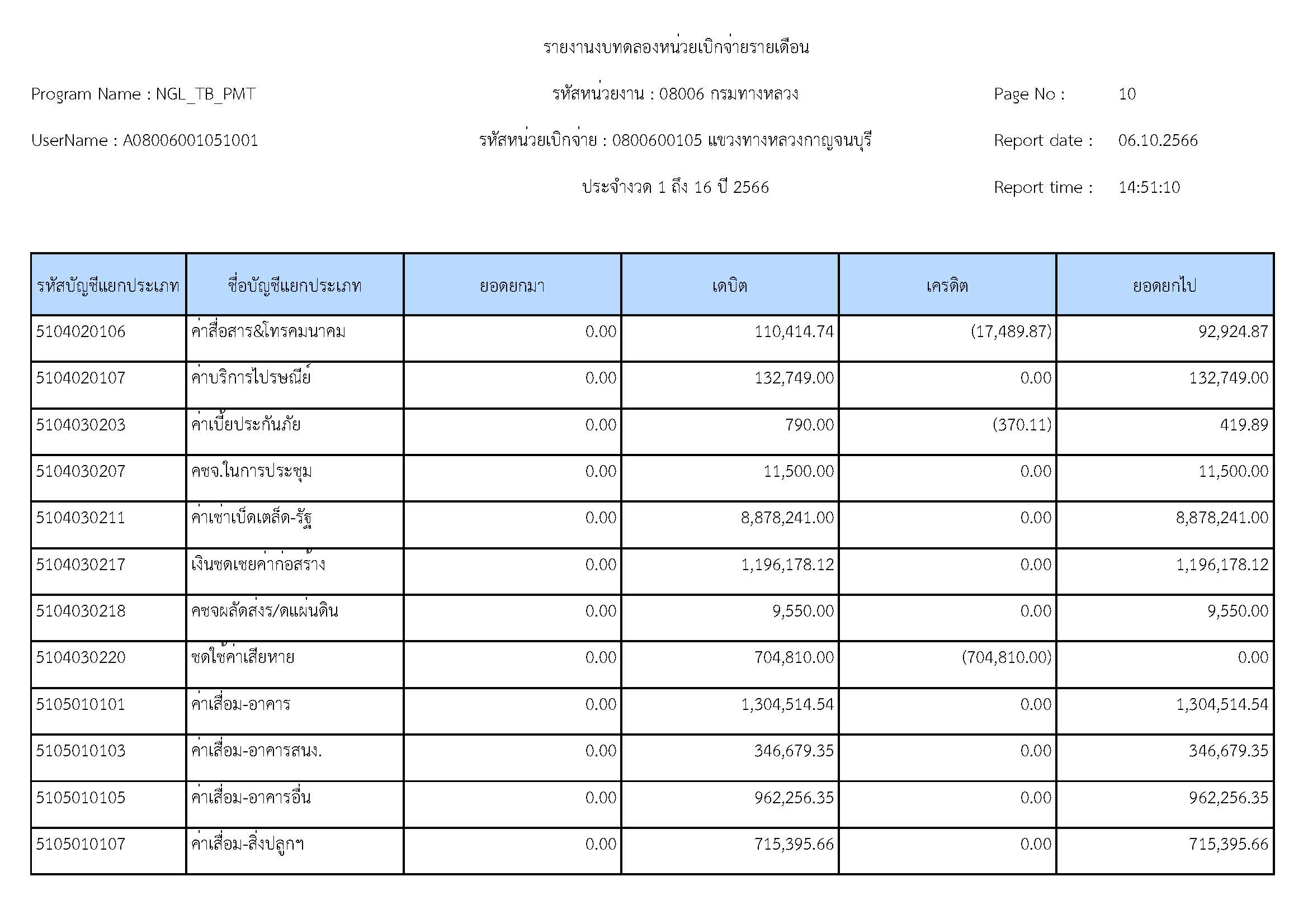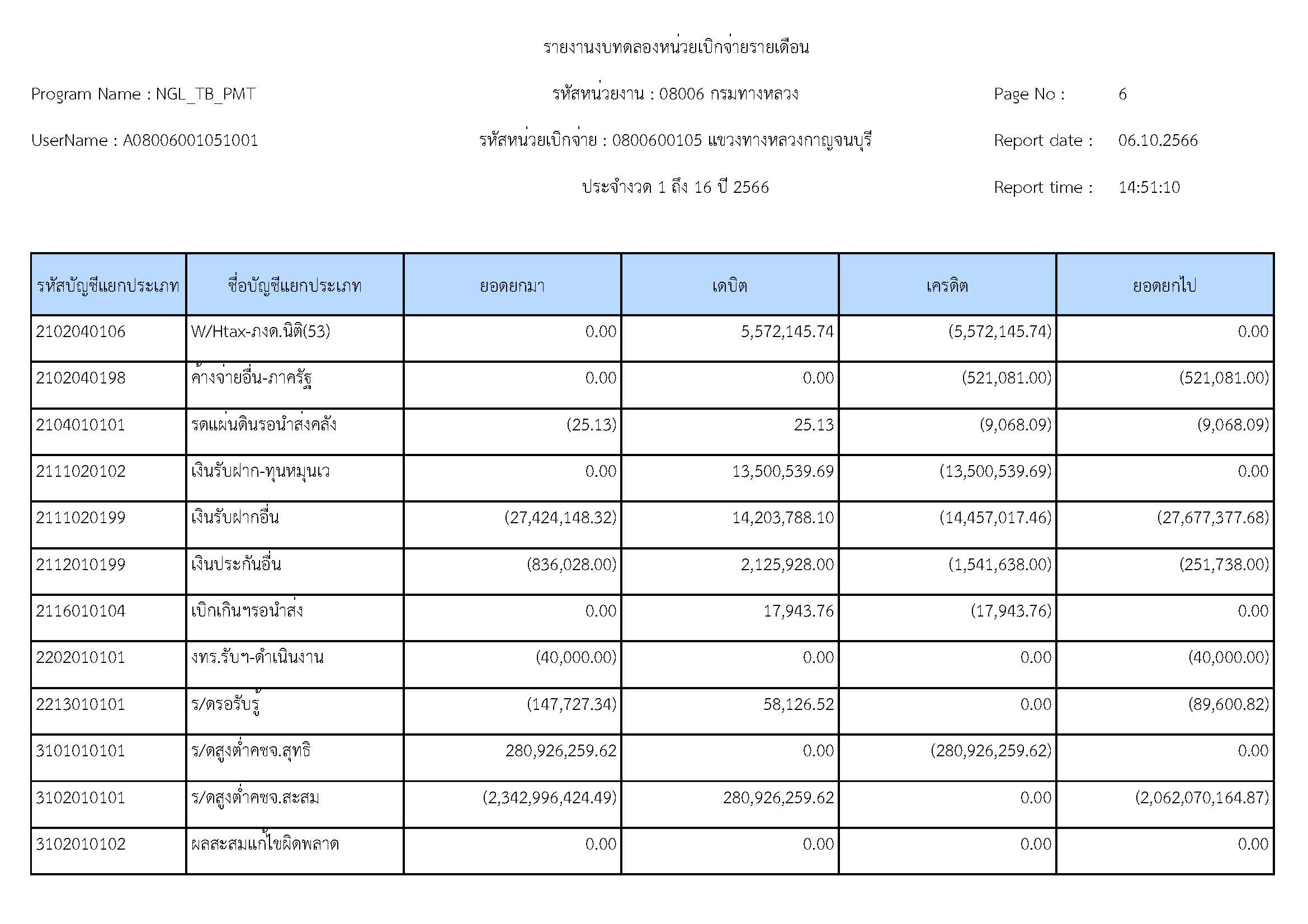 รายงานงบทดลองหน่วยเบิจจ่ายรายปี