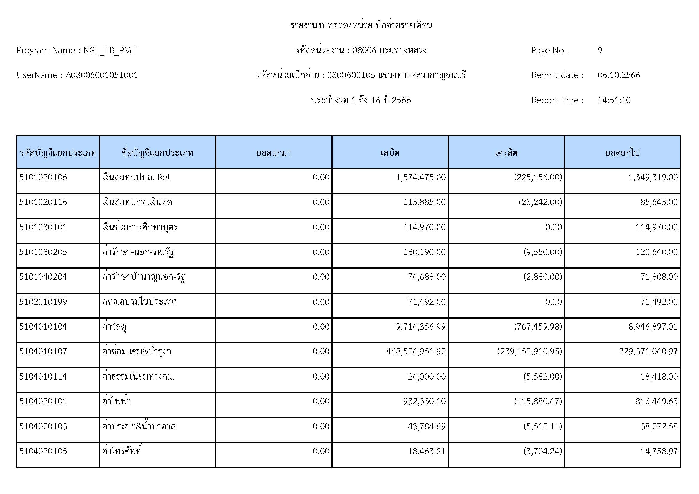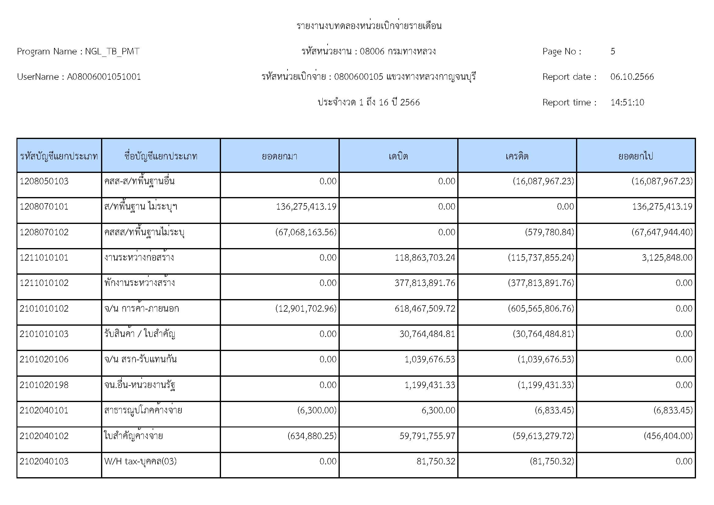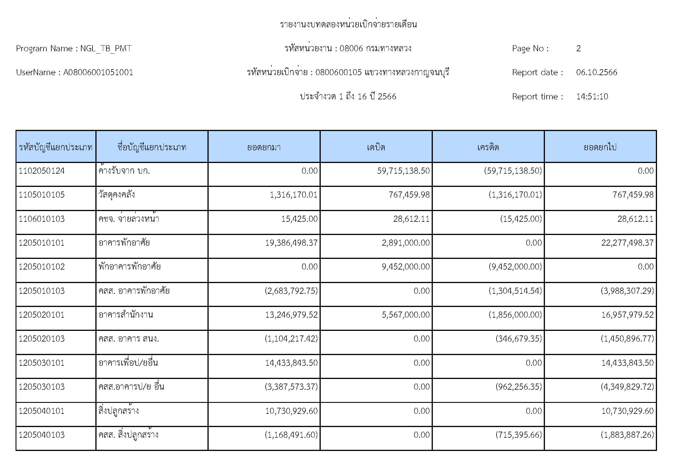 รายงานงบทดลองหน่วยเบิจจ่ายรายปี
