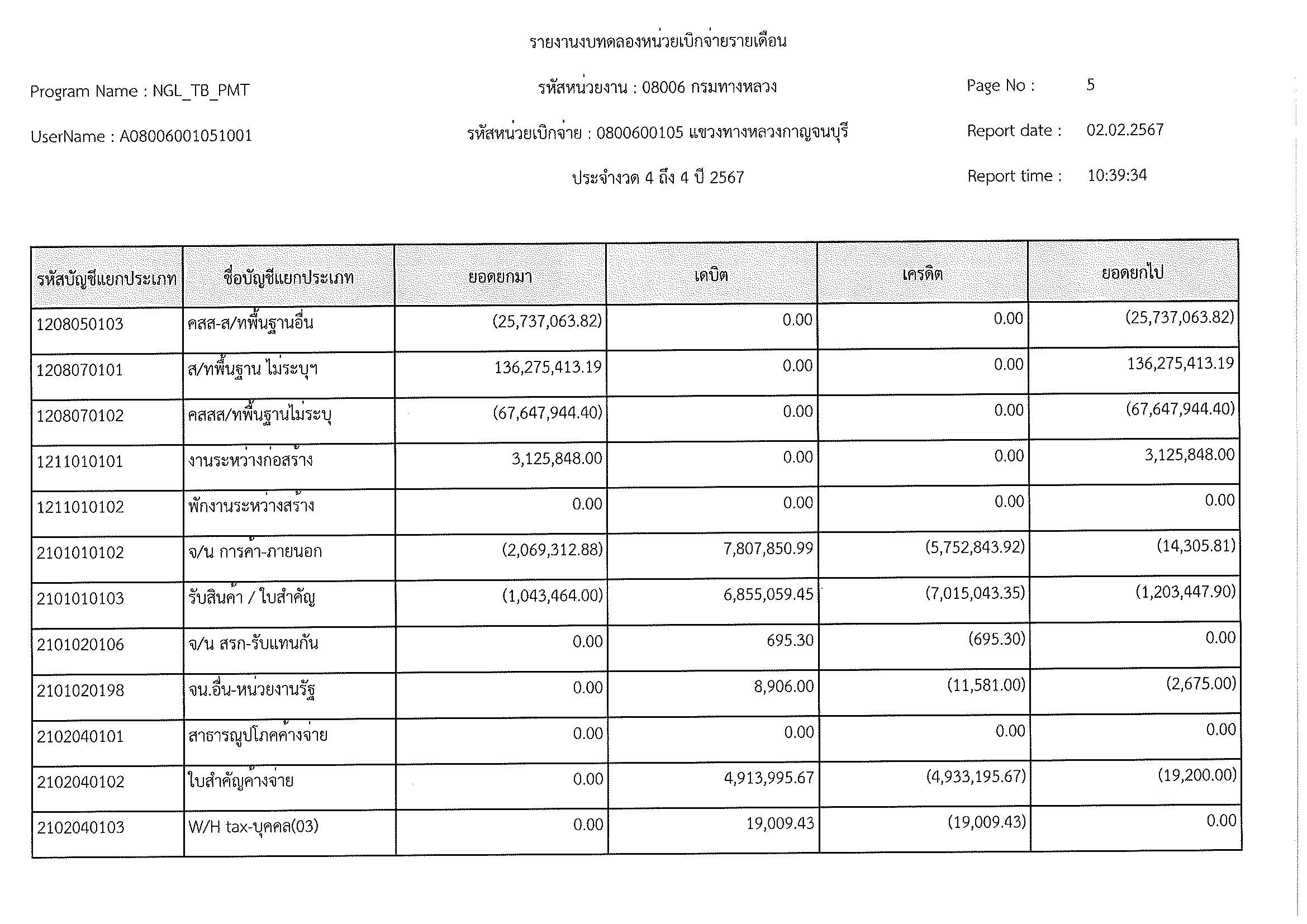 ข้อมูลข่าว : งบทดลอง ม.ค. 2567