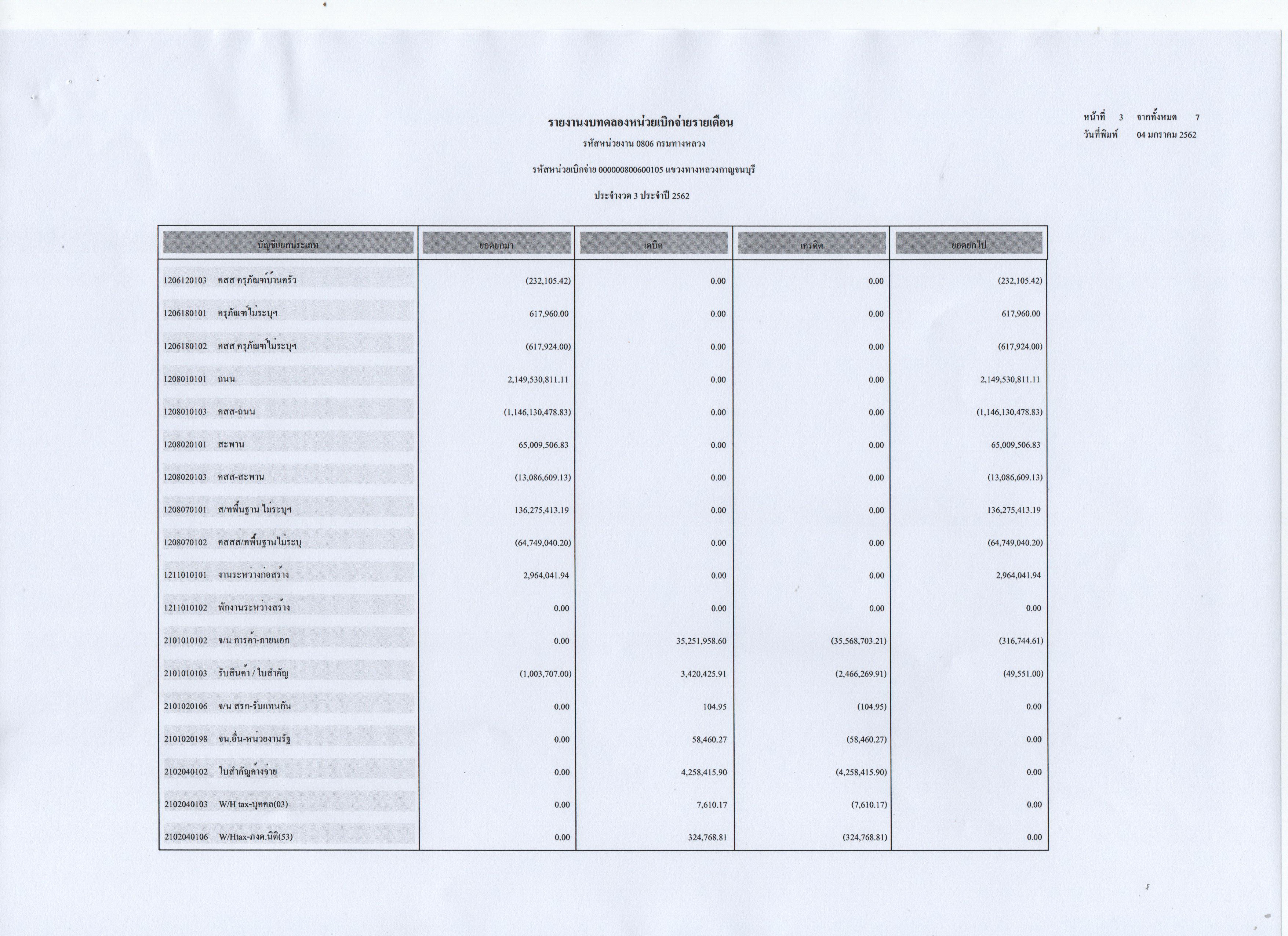 ข้อมูลข่าว : รายงานงบทดลองหน่วยเบิกจ่ายรายเดือน ประจำงวดที่ 3 ประจำปี 2562