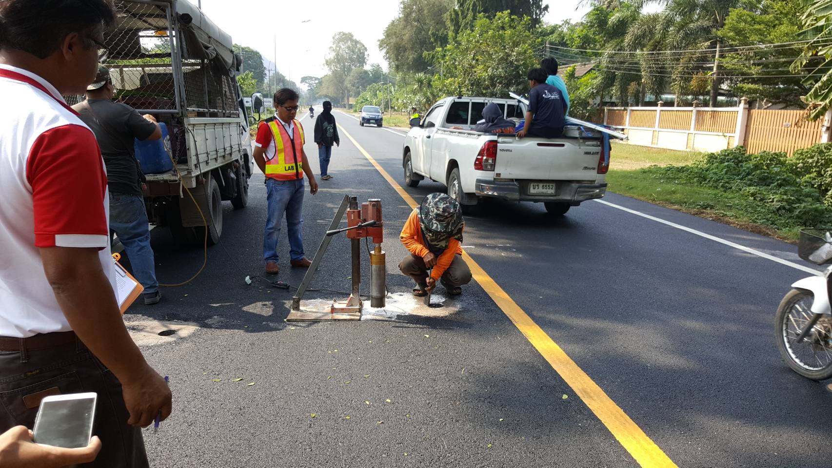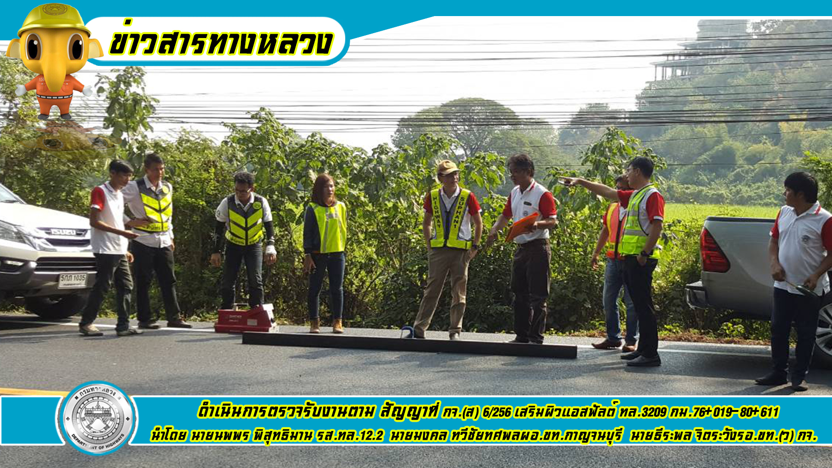 นายนพพร พิสุทธิมาน รองผู้อำนวยการสำนักงานทางหลวงที่ 12 ,นายมงคล ทวีชัยทศพลผู้อำนวยการแขวงทางหลวงกาญจนบุรี ,นายธีระพล จิตระวัง รองผู้อำนวยการแขวงทางหลวงกาญจนบุรี ฝ่ายวิศวกรรม และคณะเจ้าหน้าที่กรมทางหลวง ดำเนินการตรวจรับงานตาม สัญญาที่ กจ.(ส) 6/2562 เสริมผิวแอสฟัลท์ทางหลวงหมายเลข 3209 ตอนด่านมะขามเตี้ย - กาญจนบุรี กม.76+019-80+611